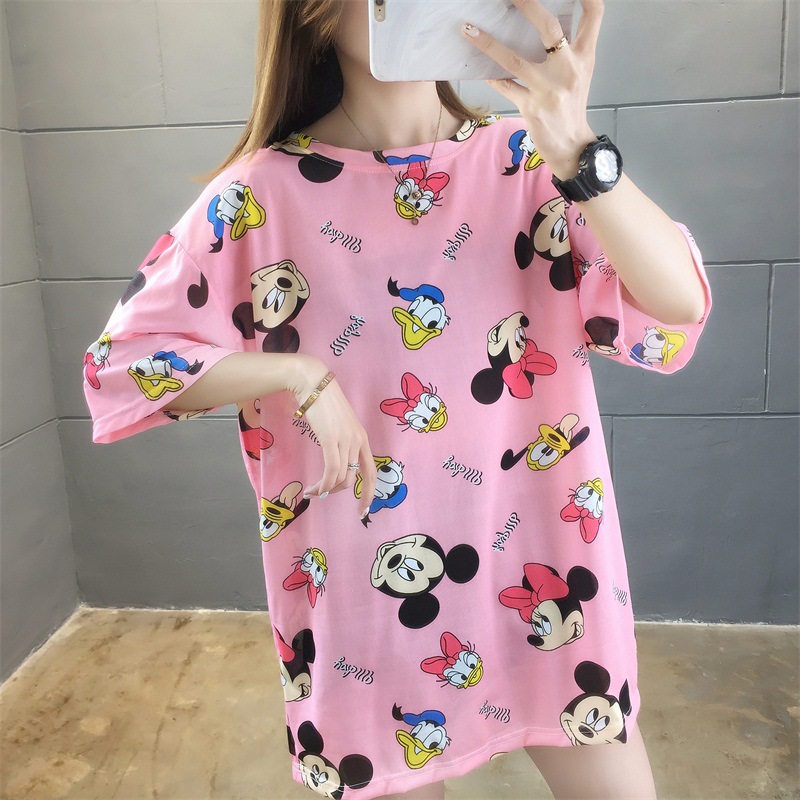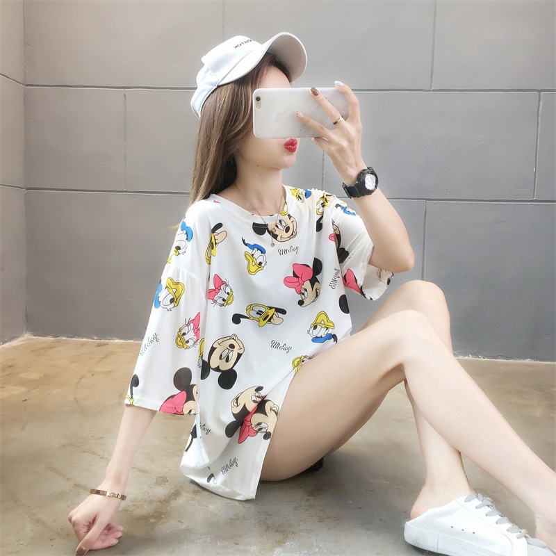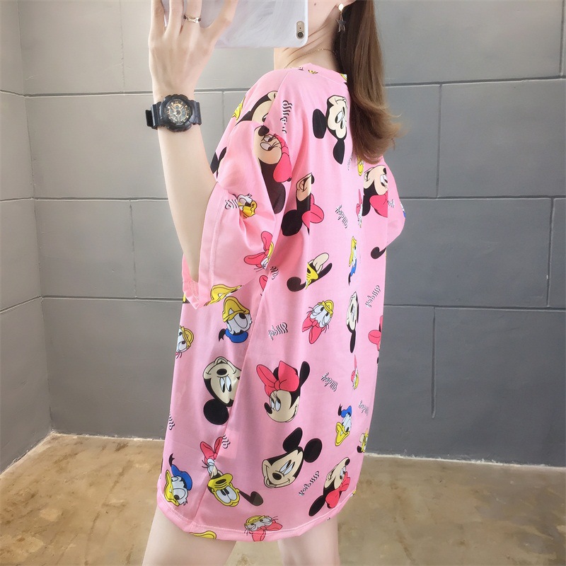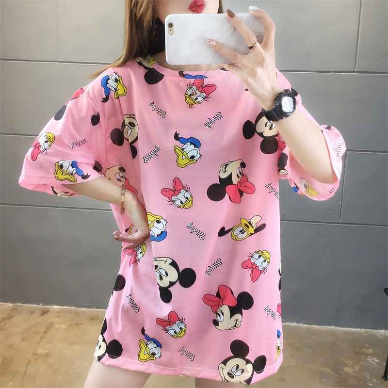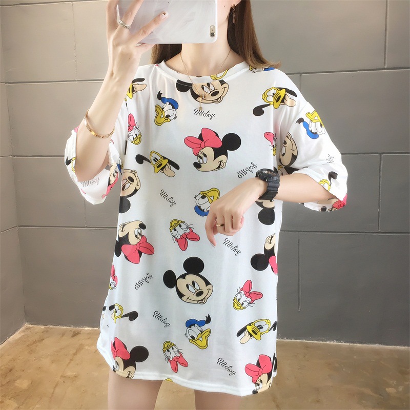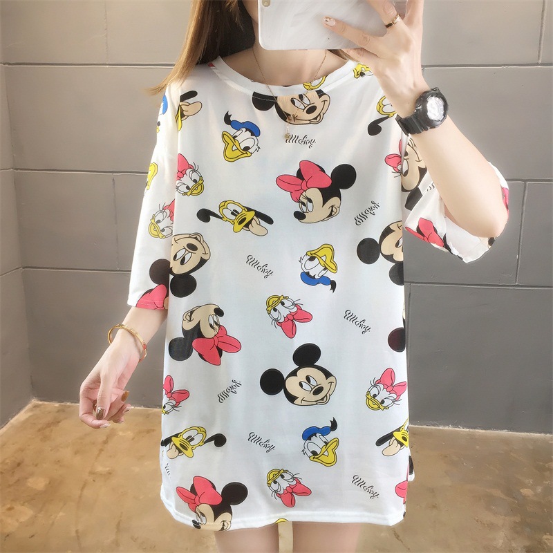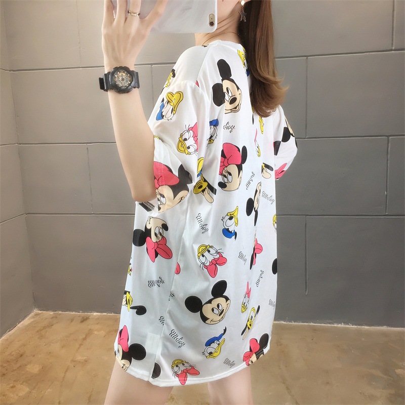 实拍图 超火ins 2020春夏韩版休闲百搭卡通米奇宽松中长款T恤上衣