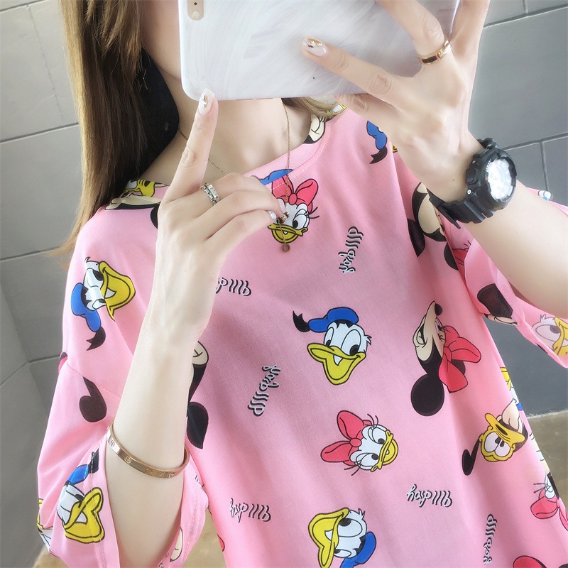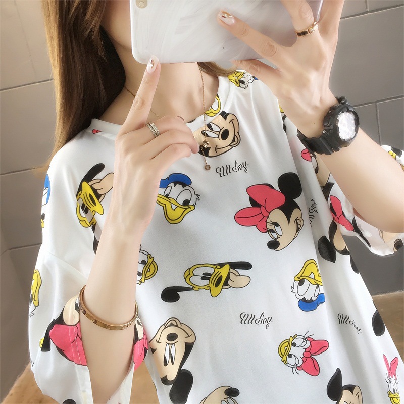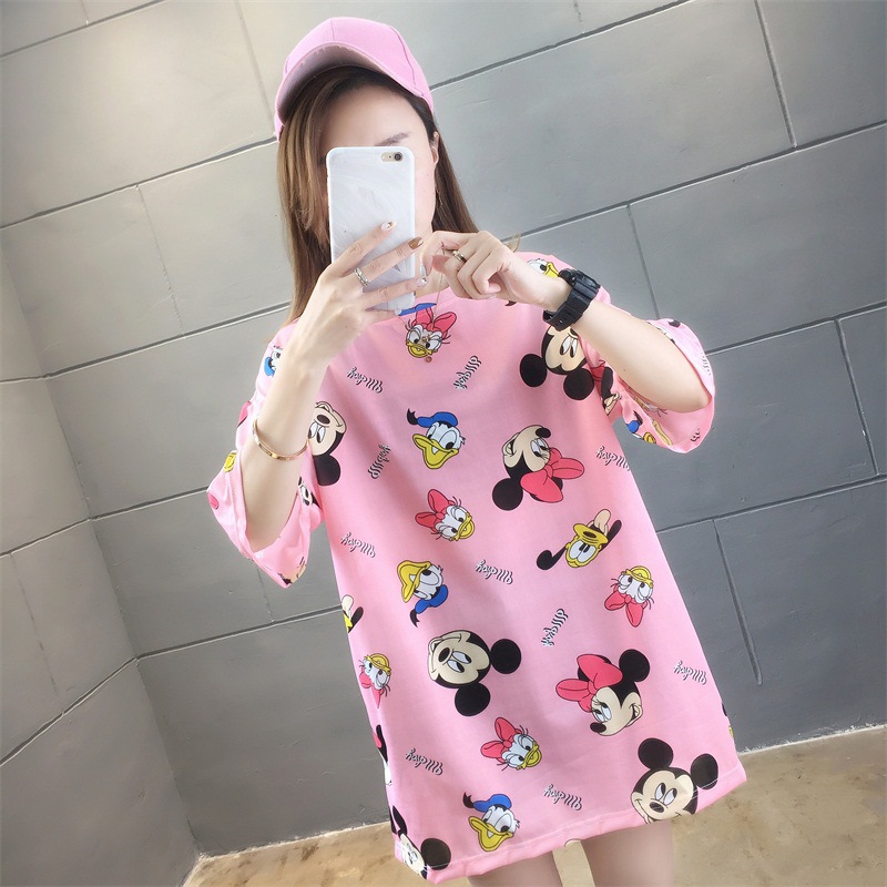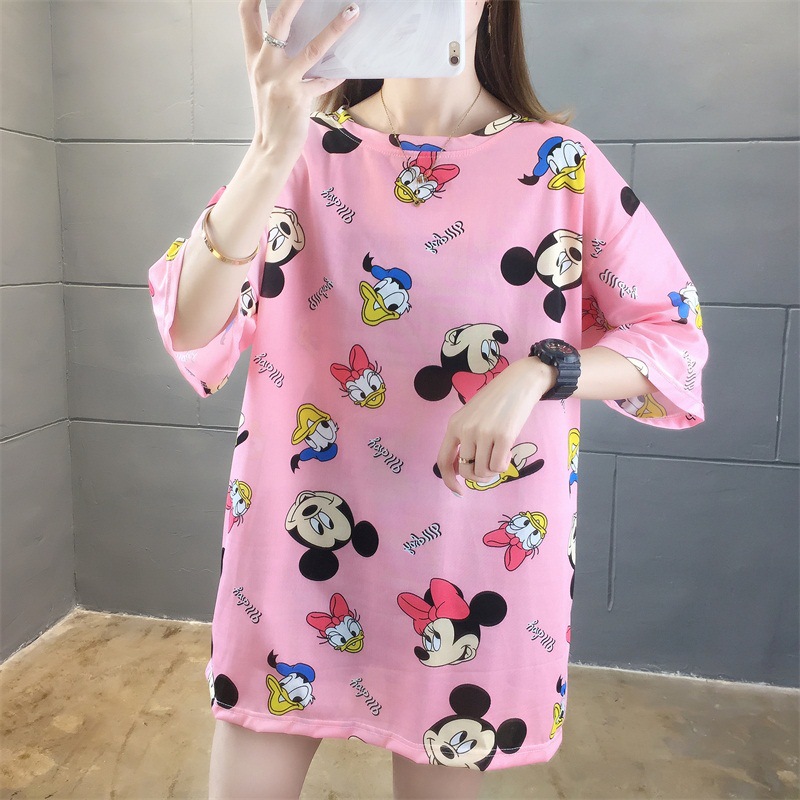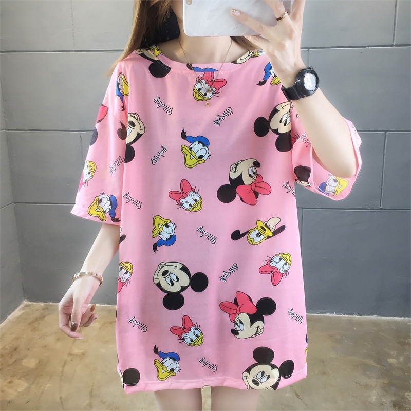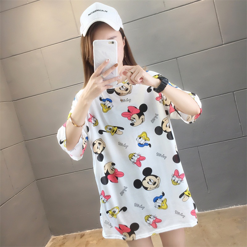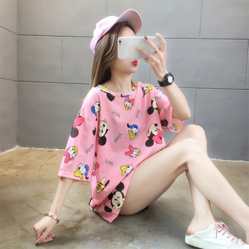实拍图 超火ins 2020春夏韩版休闲百搭卡通米奇宽松中长款T恤上衣