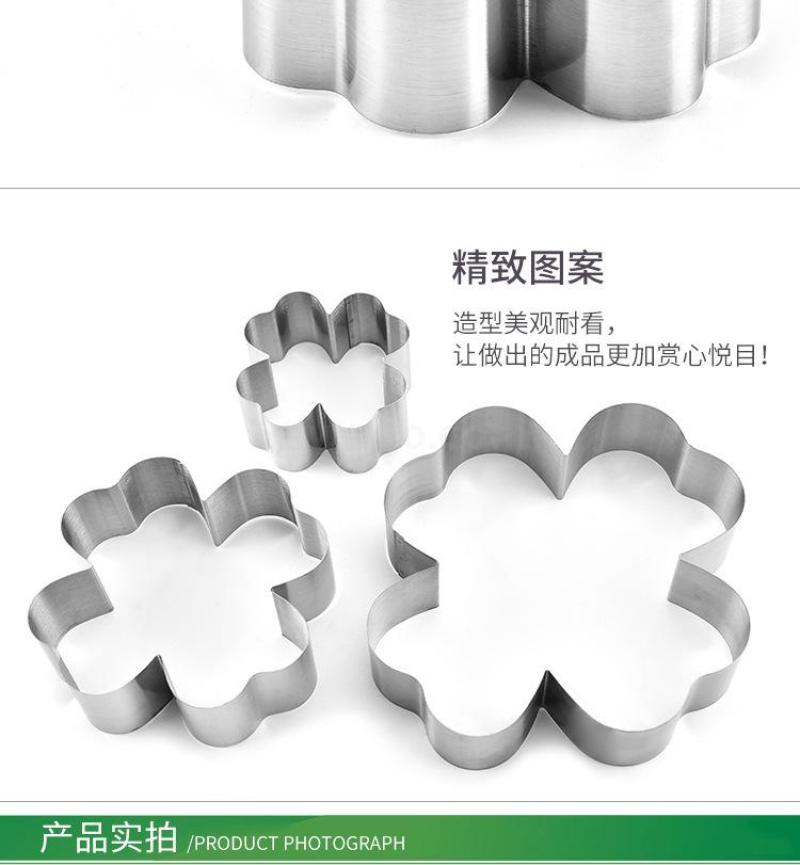 厂家直销四叶草三件套具不锈钢饼干模慕斯圈蛋糕器具