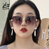 新款防紫外线墨镜女韩版潮渐变色镶钻太阳眼镜无框切边太阳镜批发