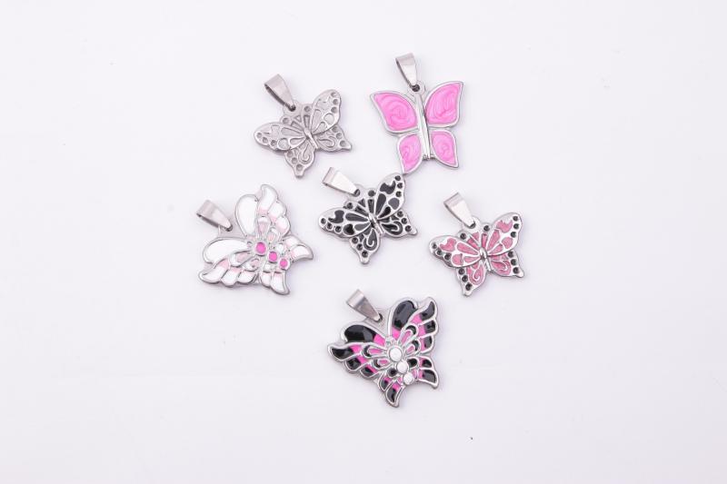 跨境外贸热销新款可爱小蝴蝶吊坠多种颜色项链不锈钢吊坠