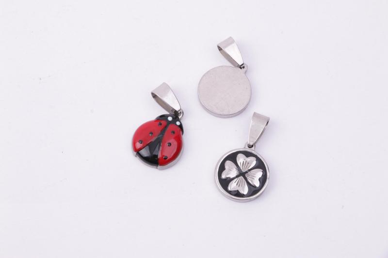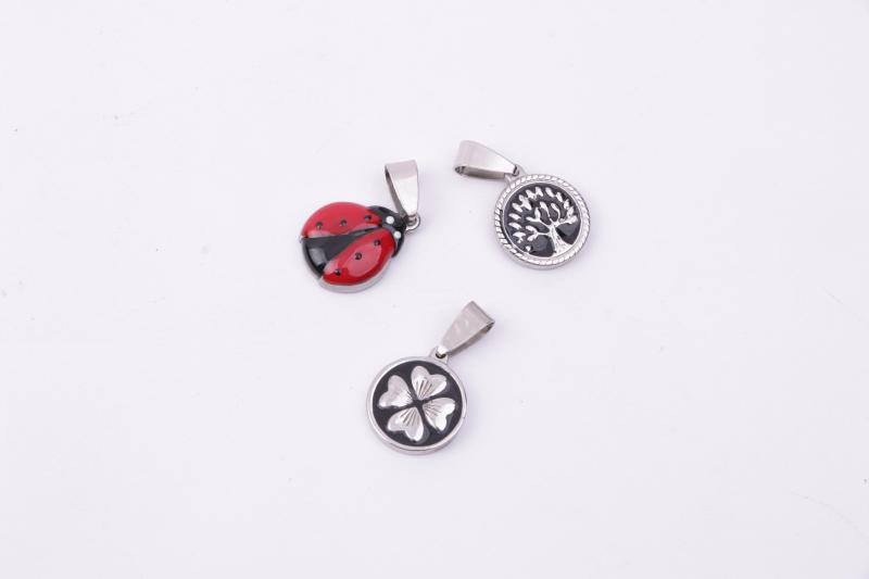 新款吊坠 红色色滴油瓢虫生命树四叶草diy配件不锈钢吊坠