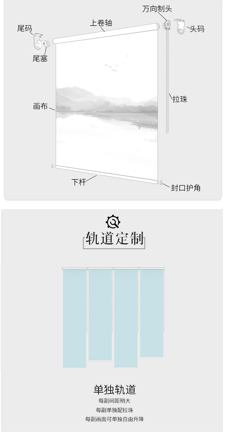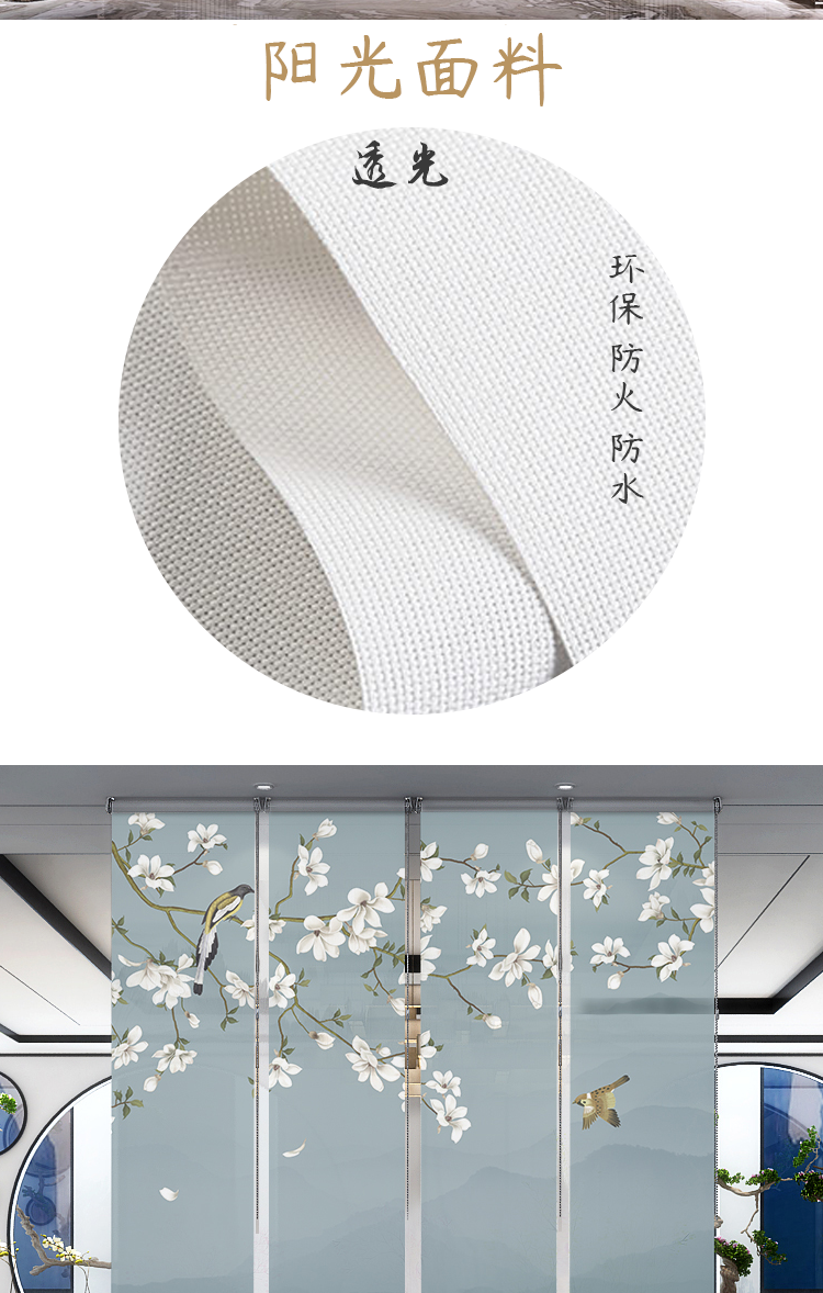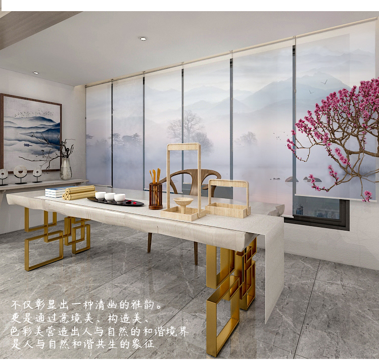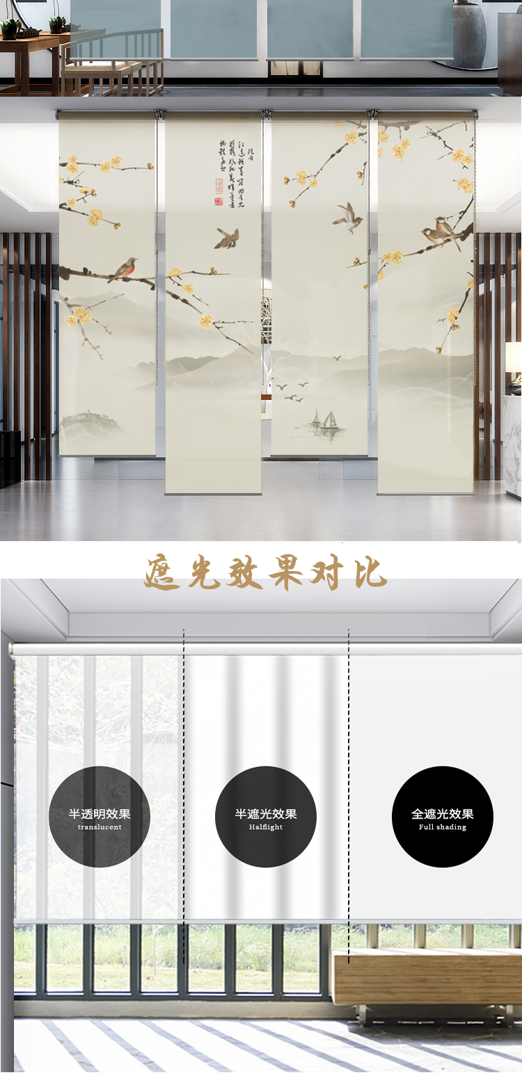办公室山水画水墨画遮光卷帘半透明窗帘悬挂式软屏风隔断玄关挂帘