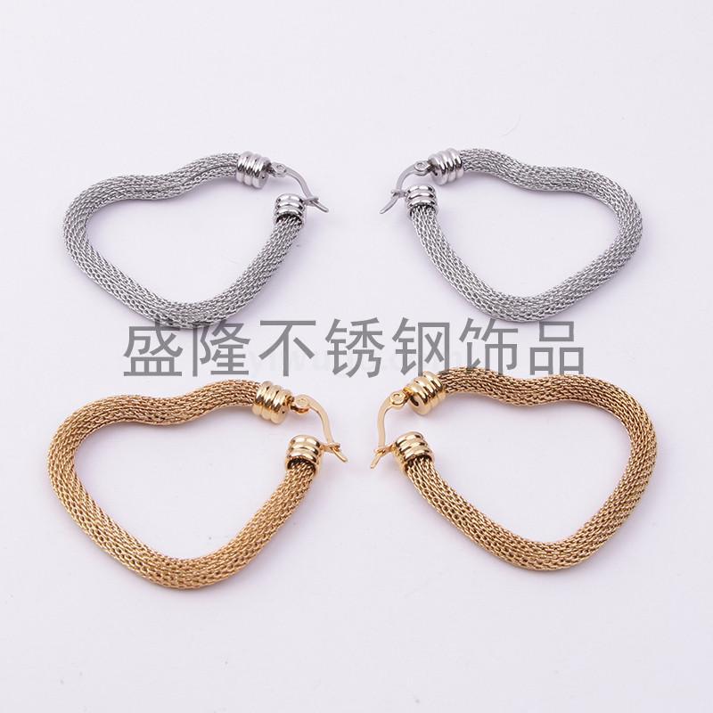 不锈钢爱心耳环 时尚简约欧美INS风金色银色弹簧耳环耳饰可定制