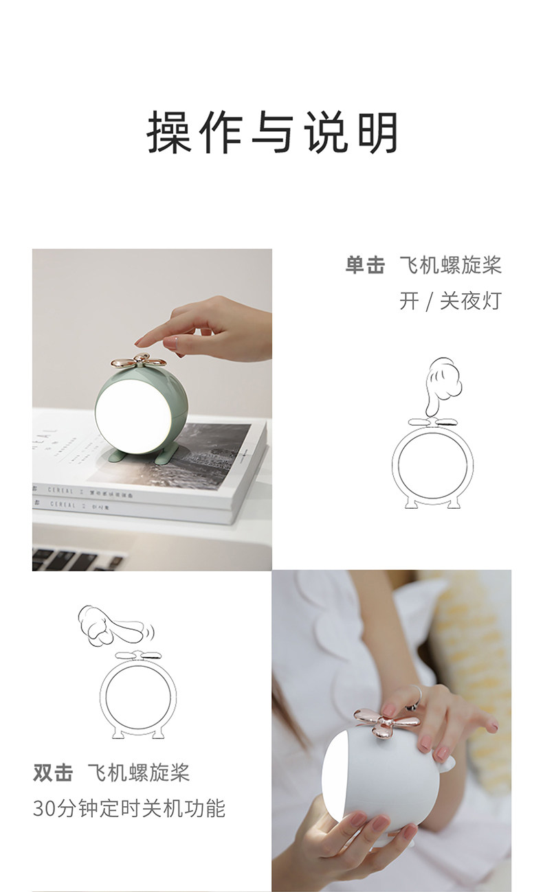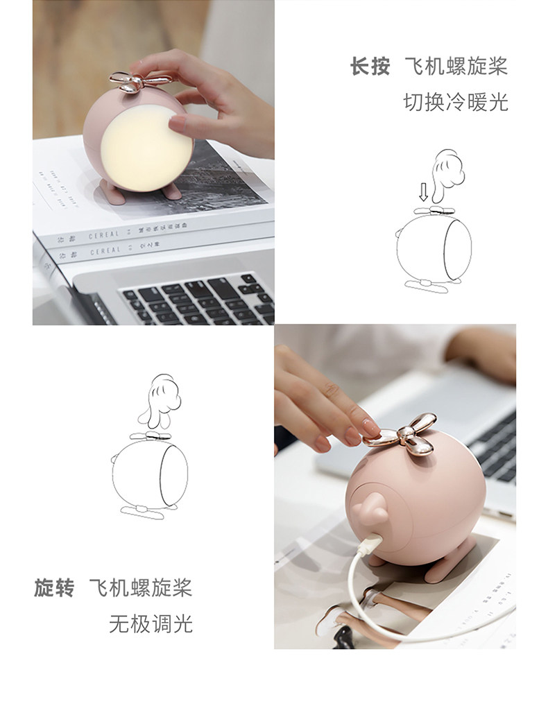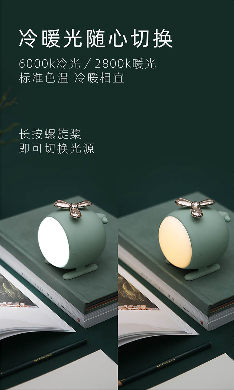 新款创意直升飞机小夜灯USB螺旋桨调光桌面LED台灯直升飞机夜灯