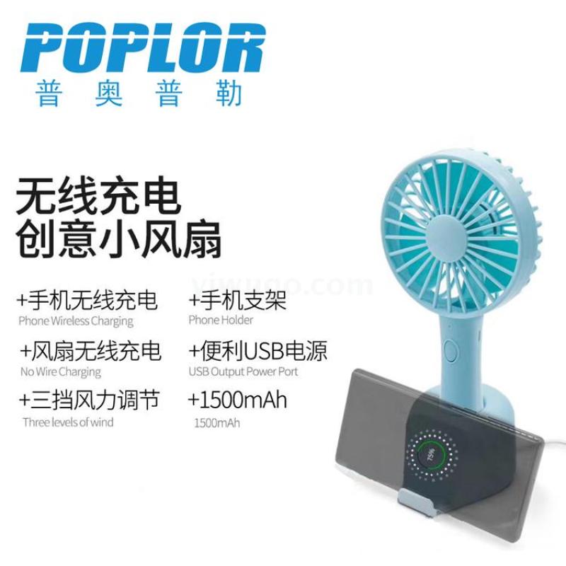 便携式手持风扇 户外便捷风扇 底座带无线充电功能带手机支架底座