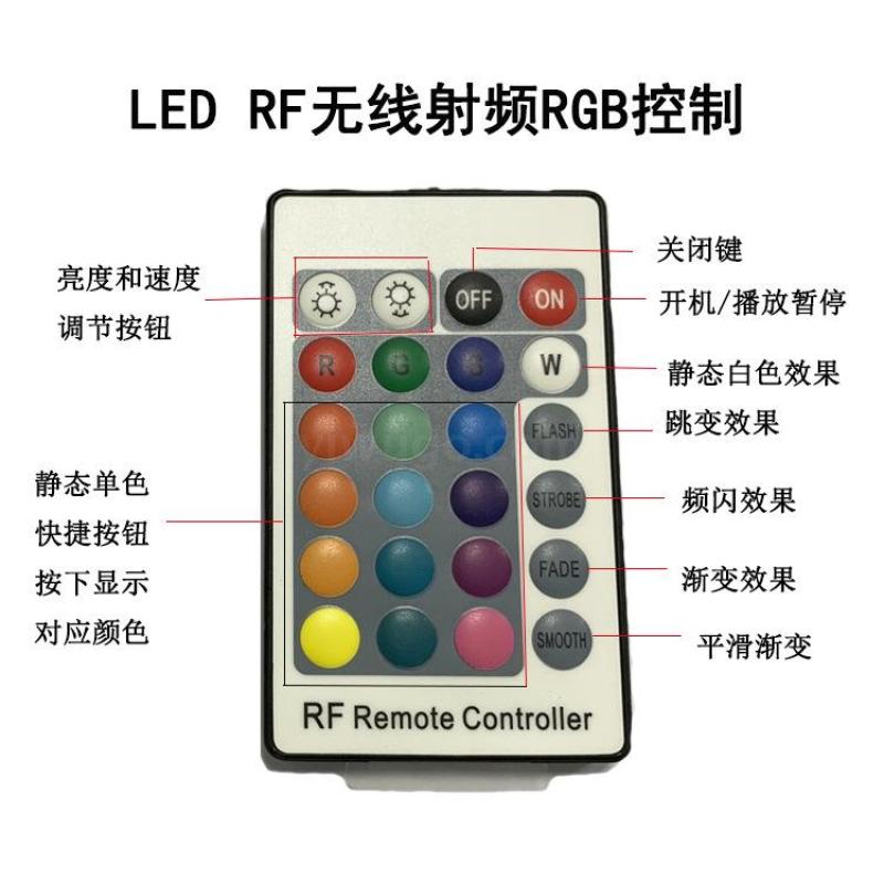 外贸专供厂家直销 24键遥控器RF迷你RGB控制器电视背景灯条控制器