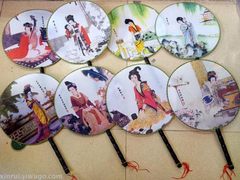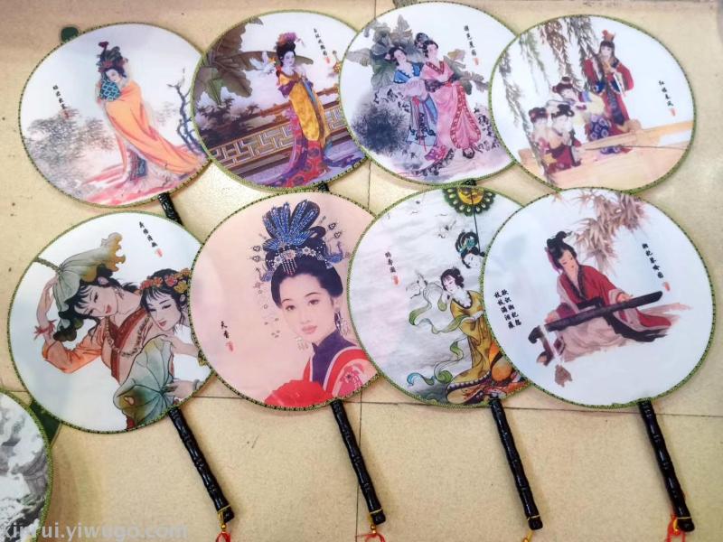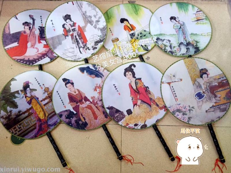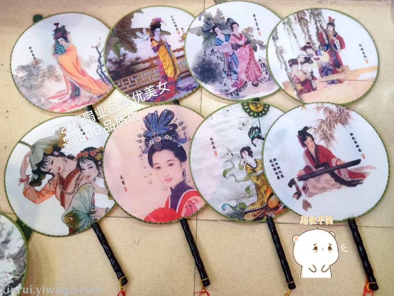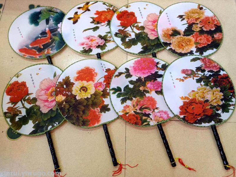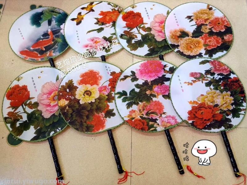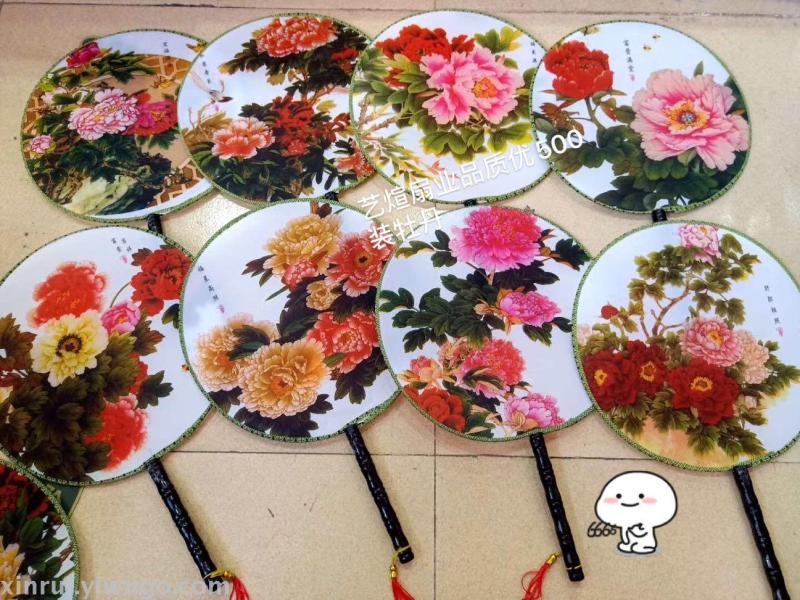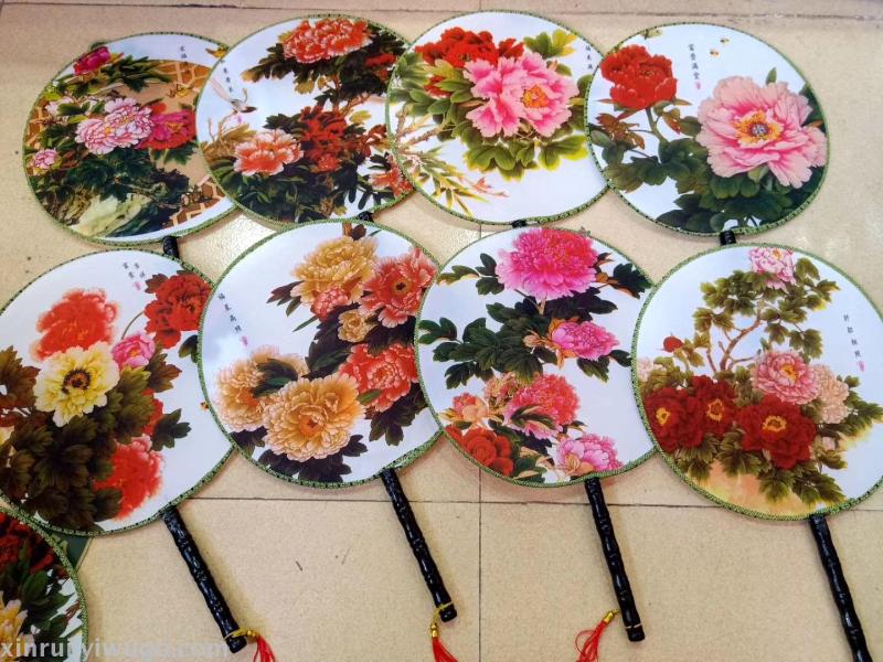 新款古风双面牡丹舞蹈团扇子女式汉服真丝长柄宫扇绘画礼品扇