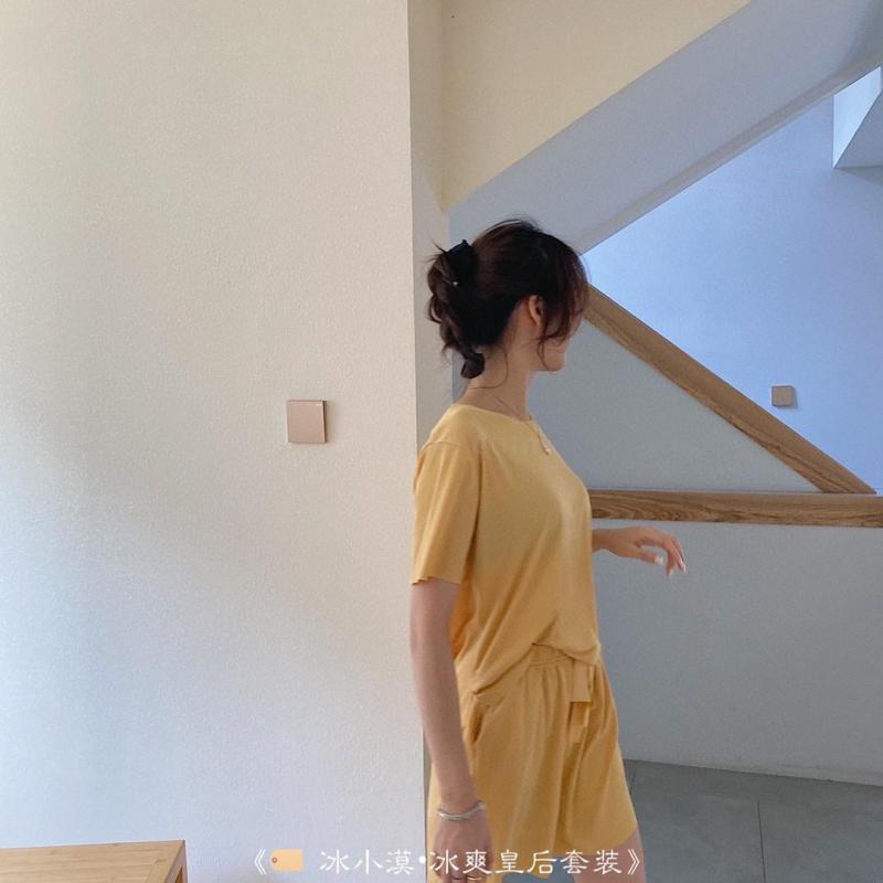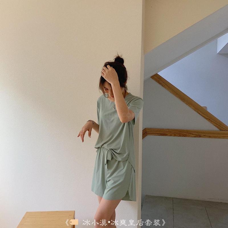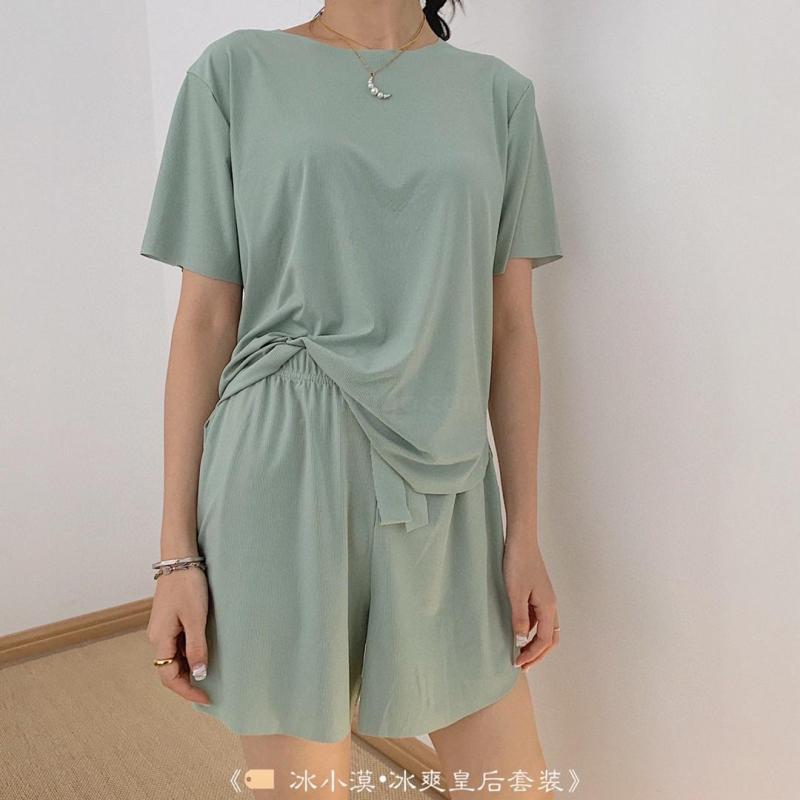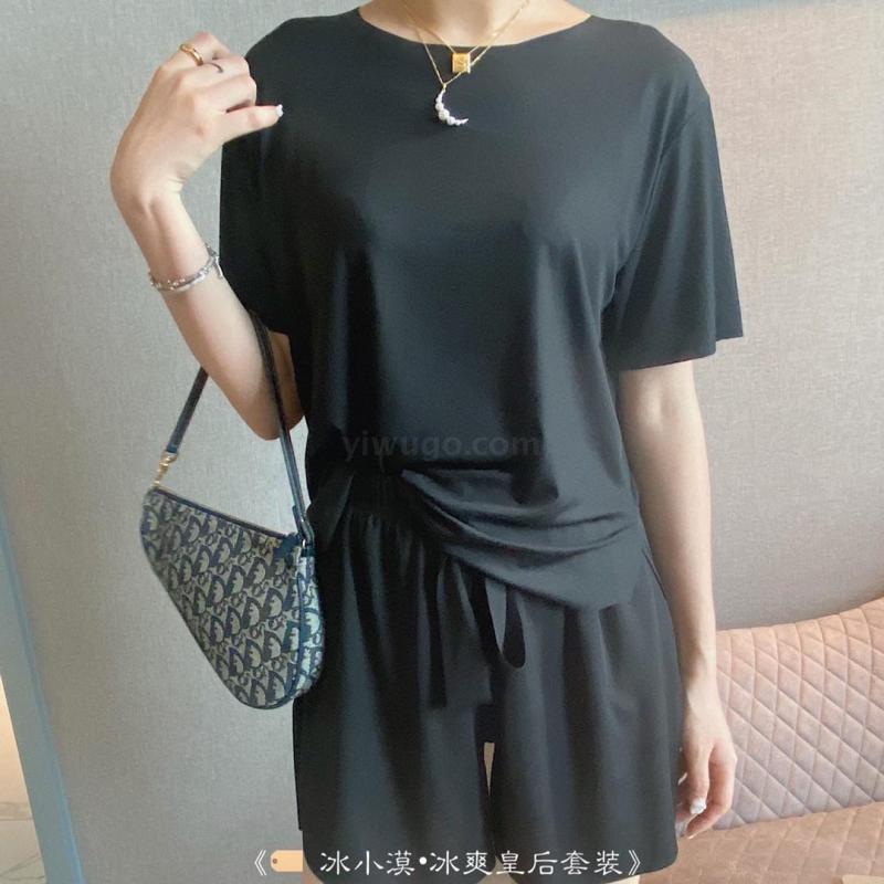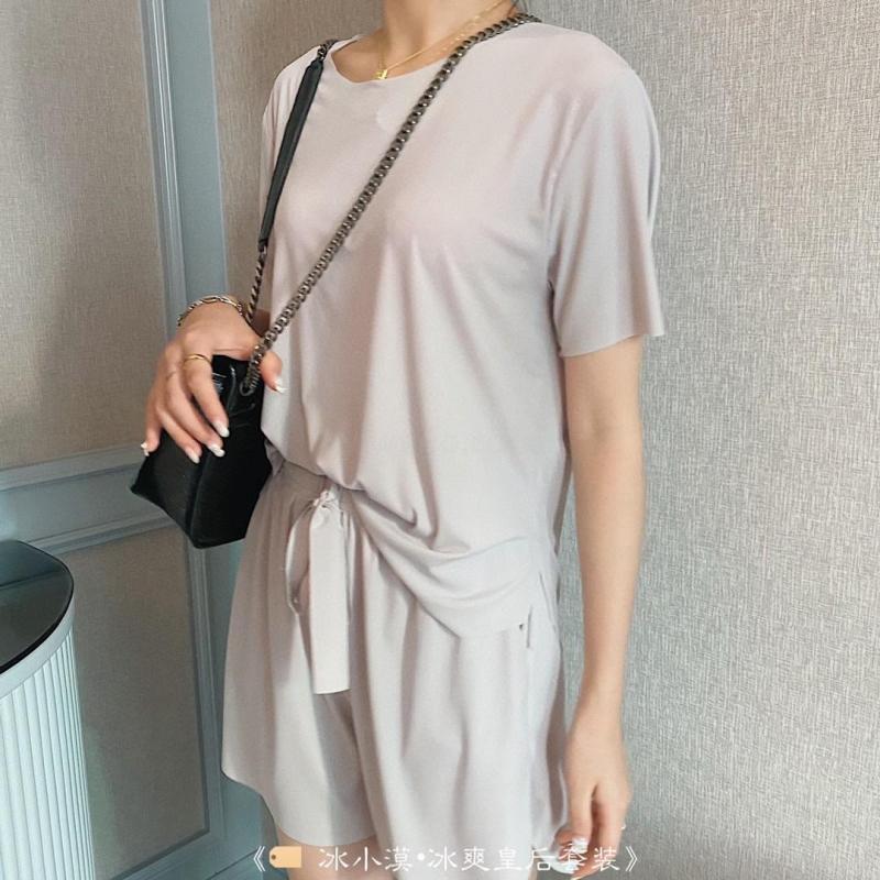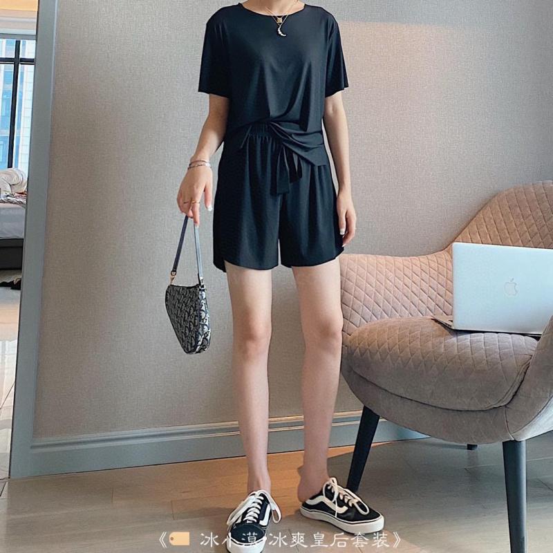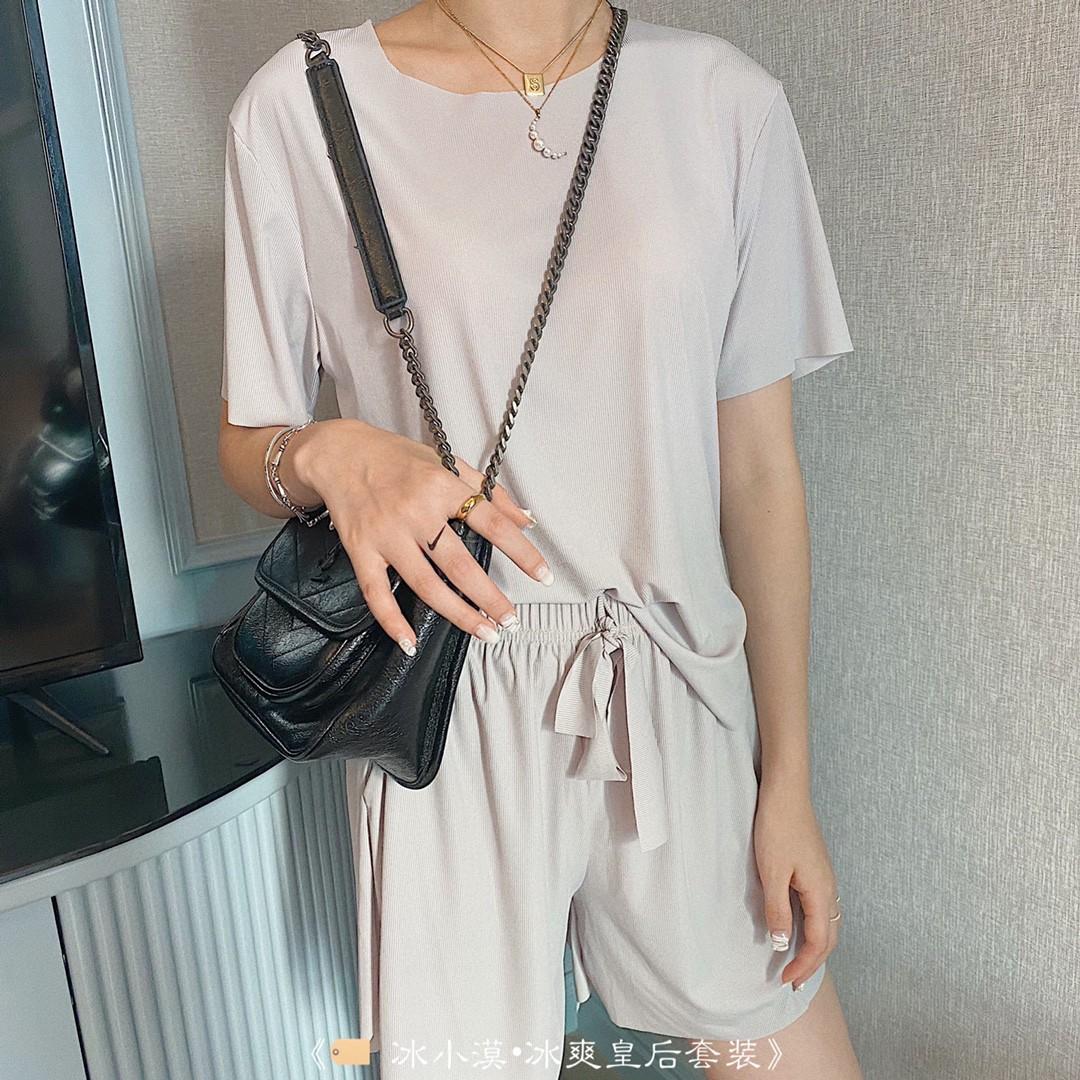 俩件套女夏季新款网红冰小漠时尚休闲宽松短裤短袖冰爽皇后套装潮
