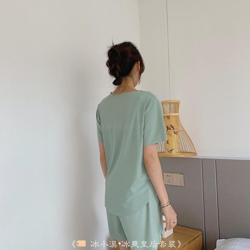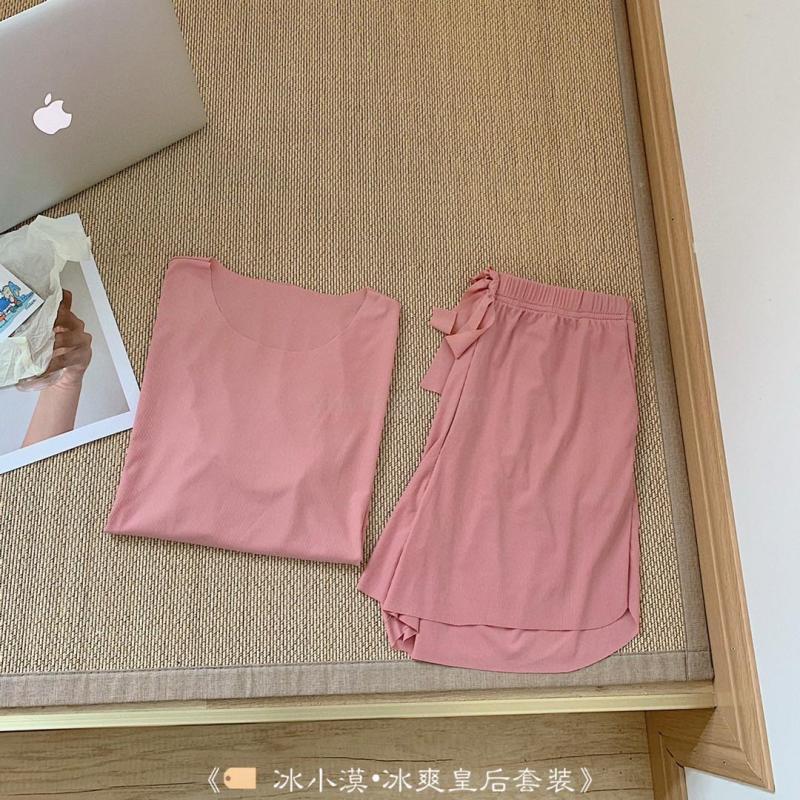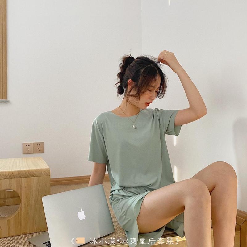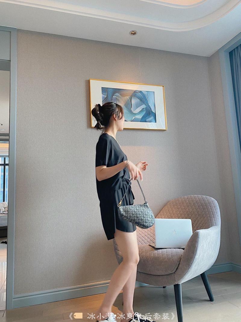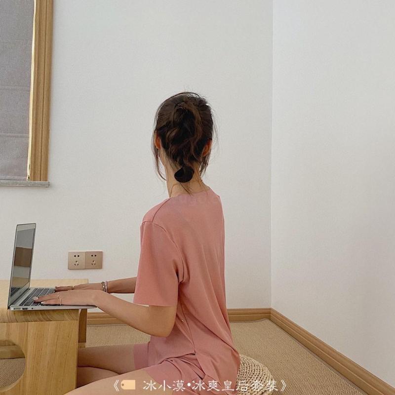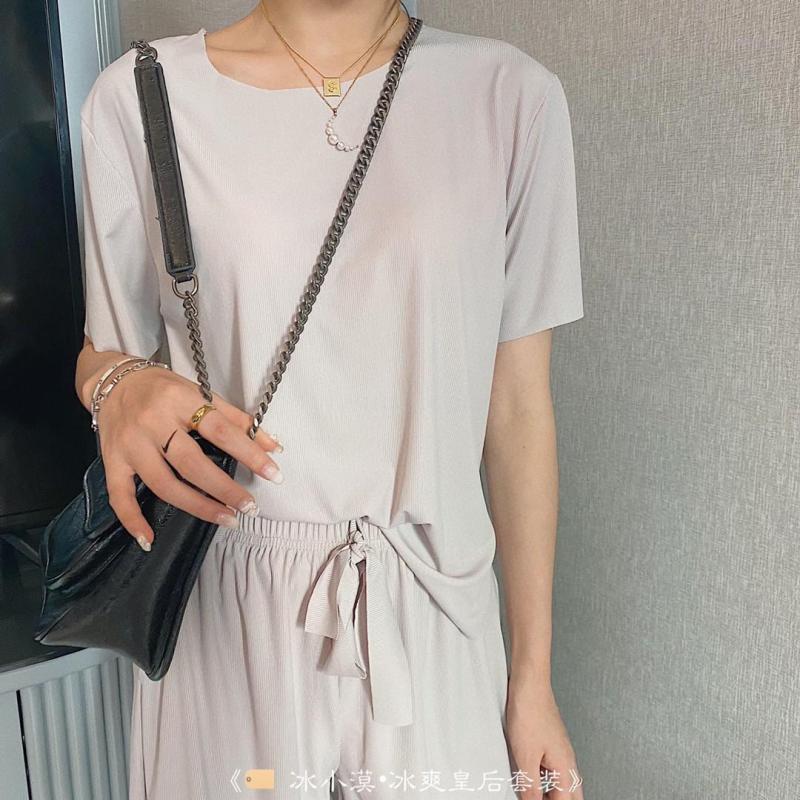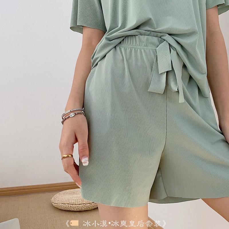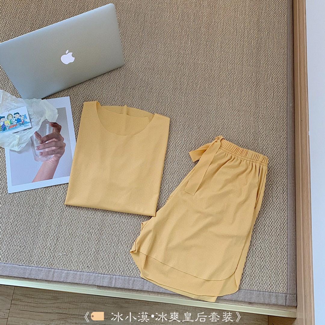 俩件套女夏季新款网红冰小漠时尚休闲宽松短裤短袖冰爽皇后套装潮