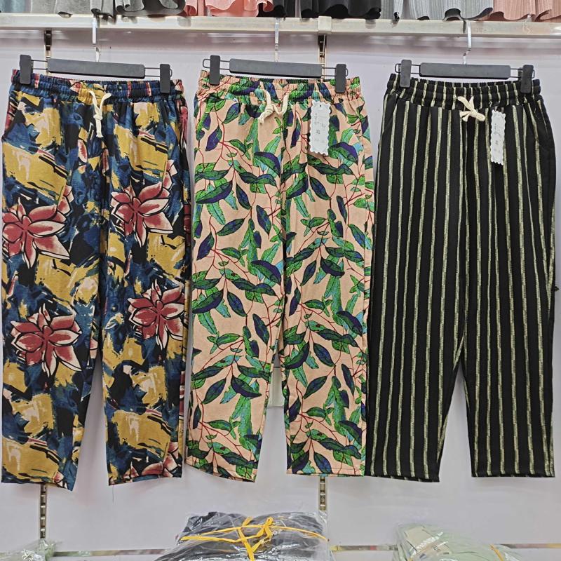 棉麻妈妈裤子夏季宽松哈伦裤薄款气质文艺八分裤2023新款女装松紧