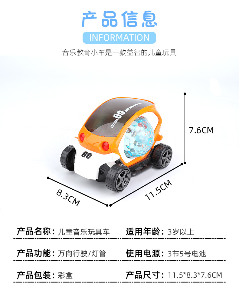 抖音爆款同款音乐投影灯光玩具车模型电动万向旋转卡通车儿童玩具