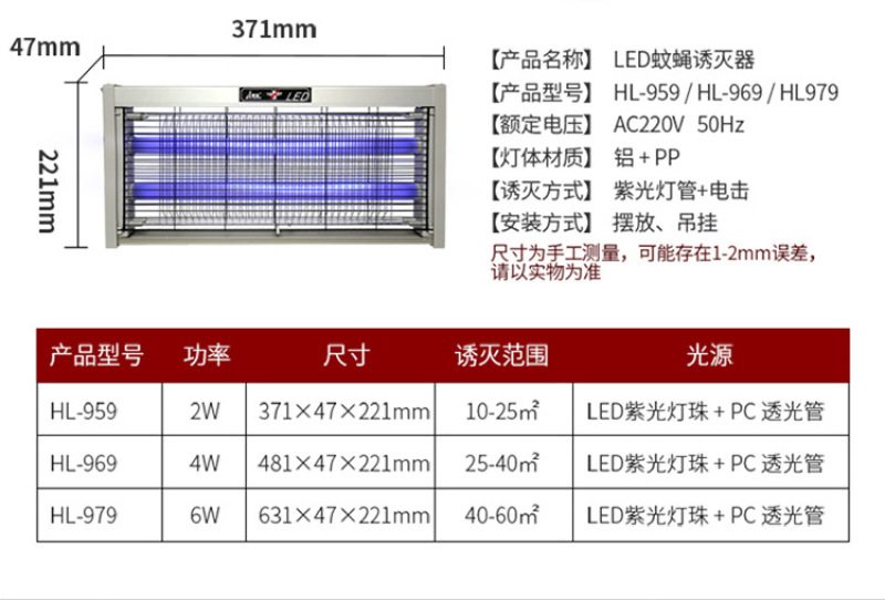 此款灭蚊灯有三个型号, 2W 4W 6W