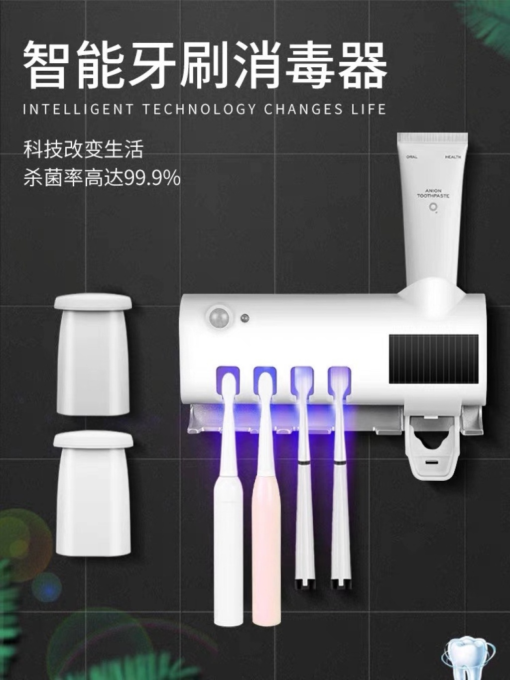 智能紫外线牙刷消毒器壁挂式消毒杀菌牙刷架自动挤牙膏器厂家直销