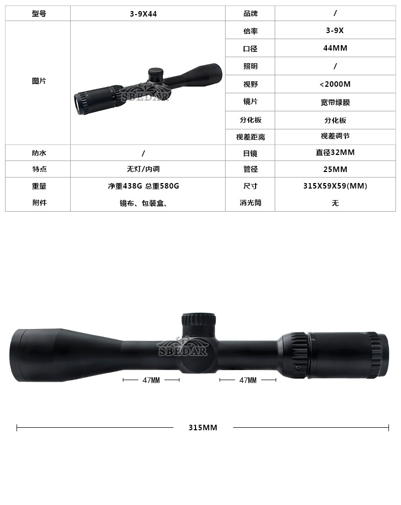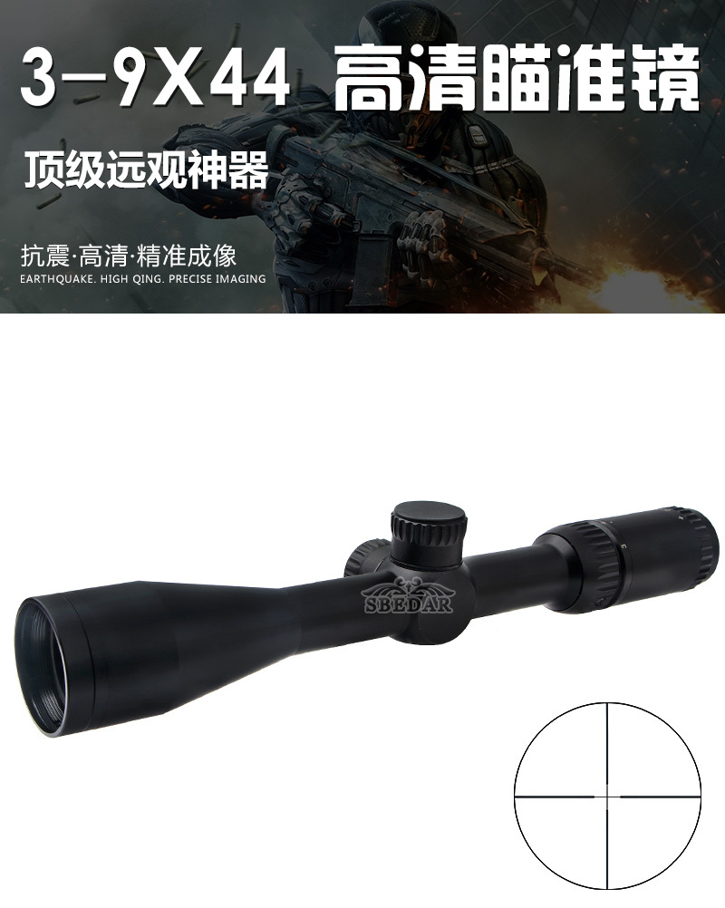 3-9X44高清一体广角薄壁绿膜光学瞄准镜