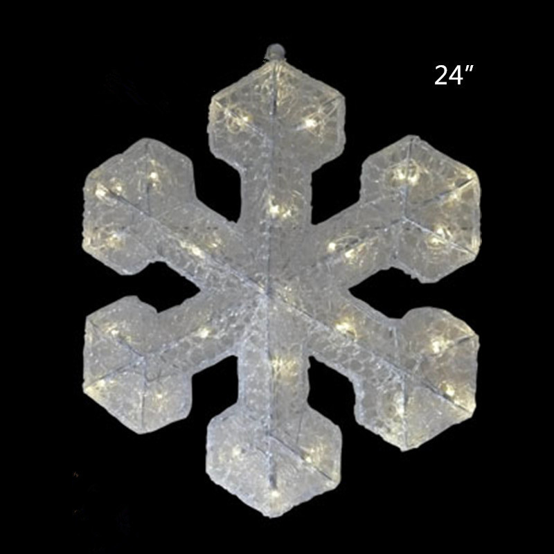 外贸专供圣诞彩灯24英寸单面雪花白色滴塑造型灯