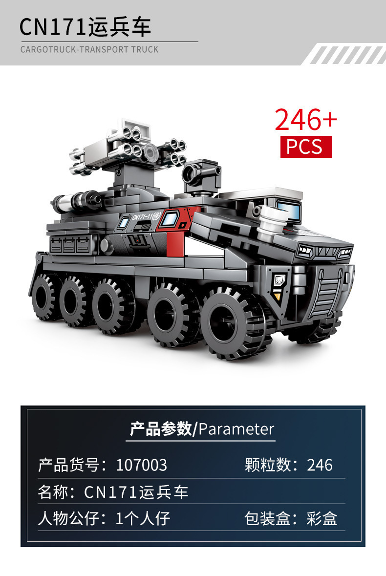 | 107003 personnel carriers (apc) cn171(107003运兵车CN171) | USD $7.66 | 853 box available |