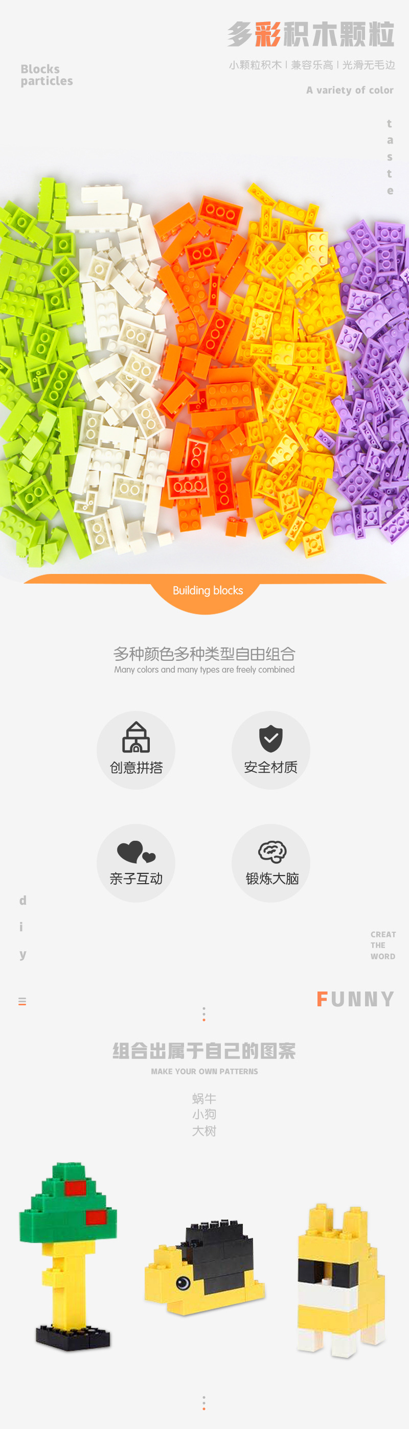 250片小颗粒儿童积木 DIY散装拼插积木墙高低砖车轮益智早教积木
