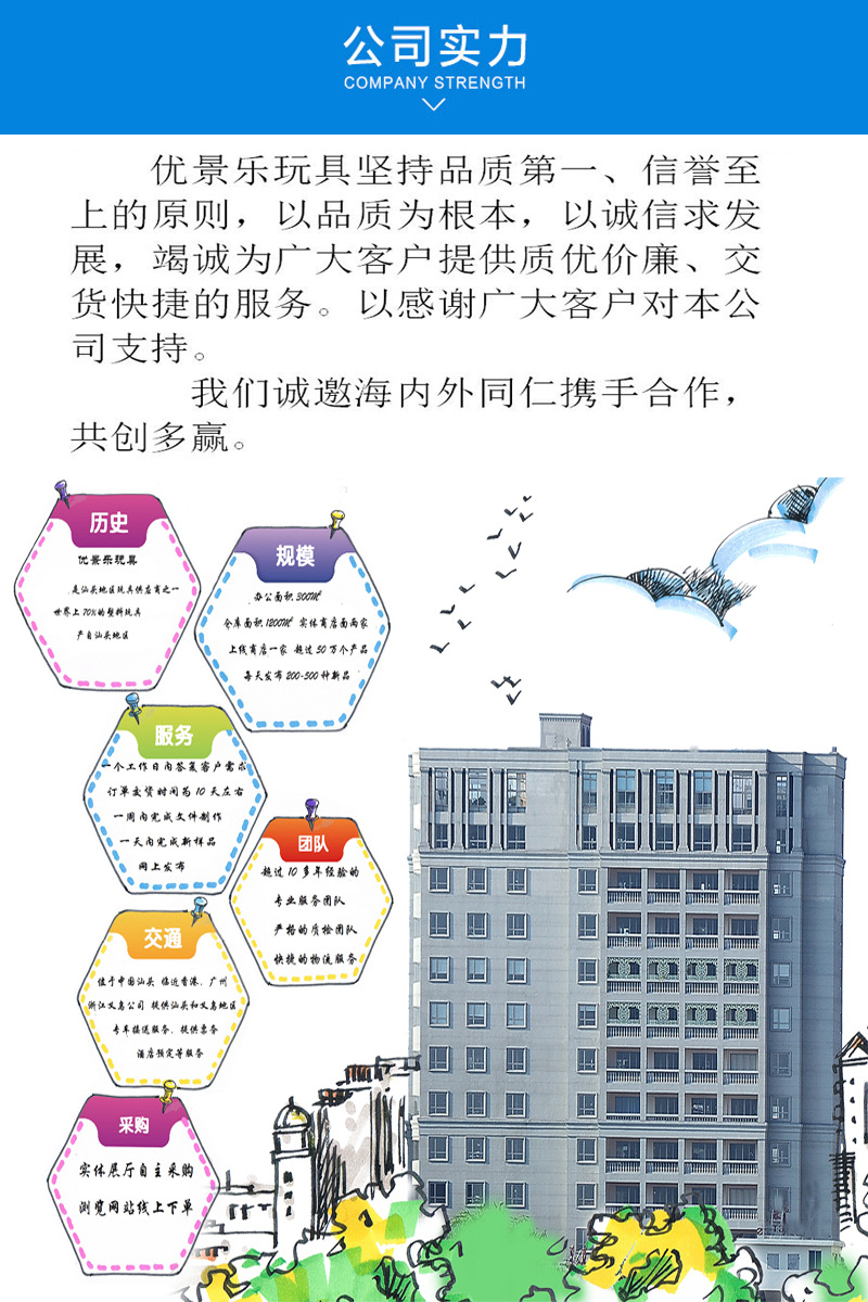 2、本公司所有商品均有严格检测才予出货,由于是塑料玩具,出厂质量保证合格率97%-98%以上。2%-3%存在不可预测的问题是属不负责问题。