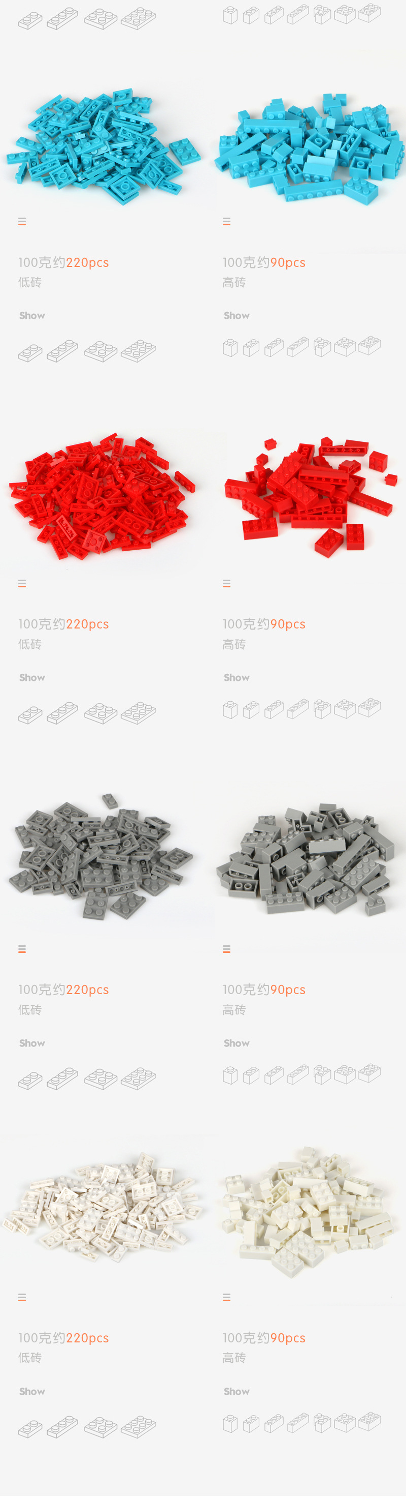 | Gray High Brick (250G about 220 Particles)(灰色高砖(250g约220颗粒)) | USD $1.88 | 4900 piece available |