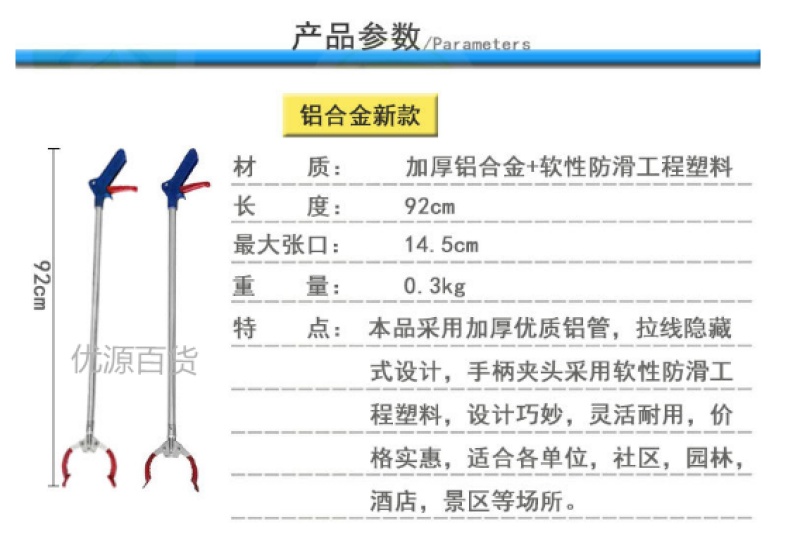 产品名称:92CM加厚铝合金垃圾夹拾物器