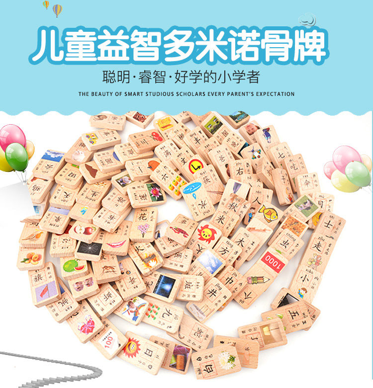 木质儿童100粒双面认知实木多米诺骨牌积木早教益智学习启蒙玩具