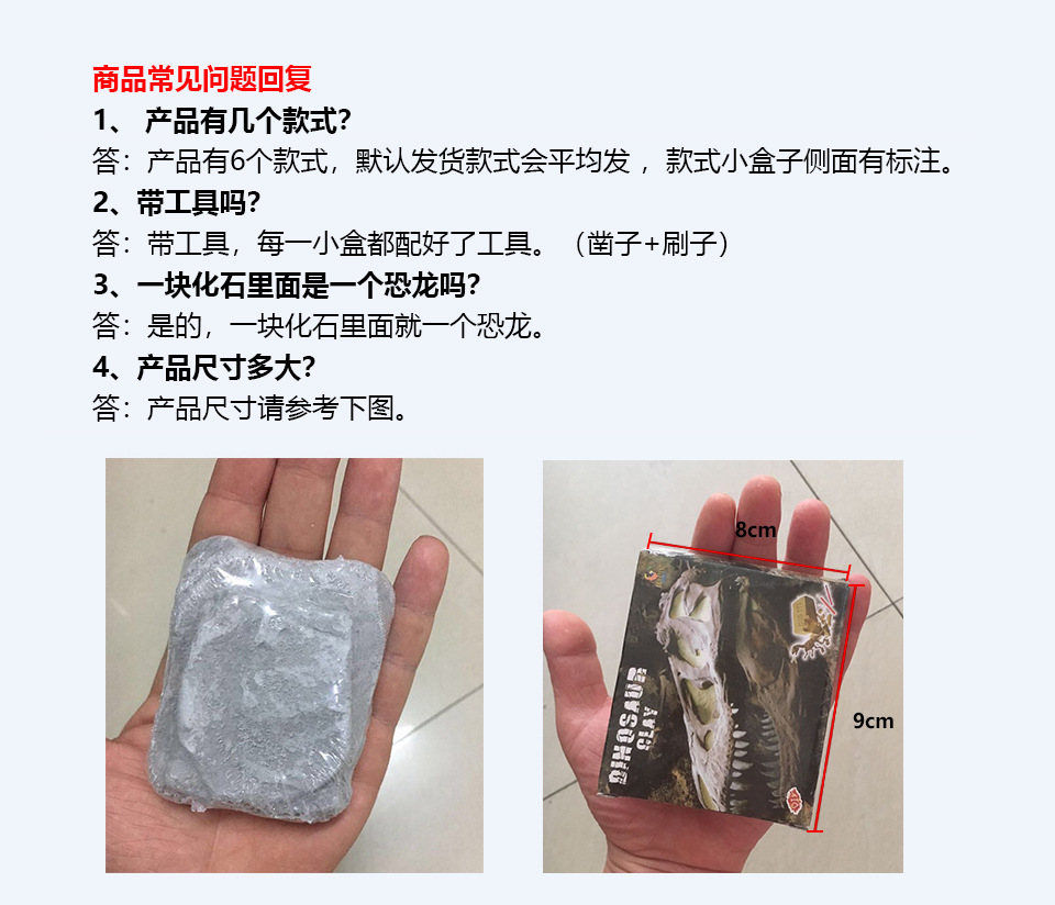 2. 在挖掘过程中,请小心操作,并从中体验考古挖掘的乐趣。当挖掘到骨骼化石时,请用毛刷刷净化石表面粉末,之后,将挖掘出的骨骼化石清洗、擦试、晾干。