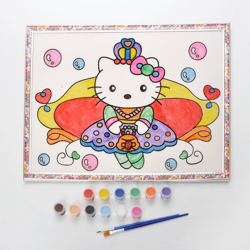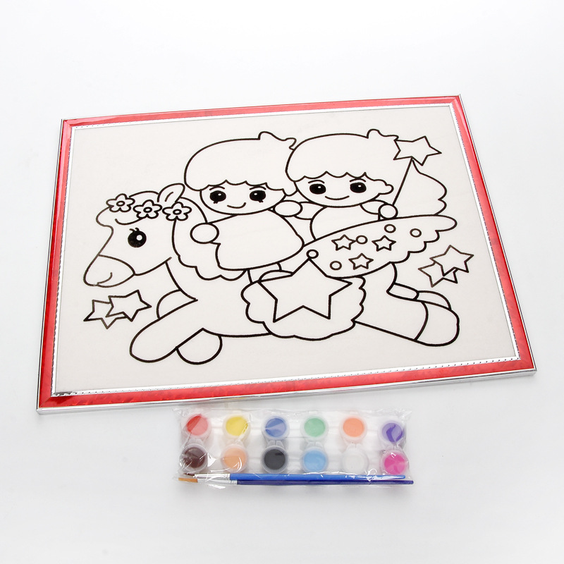 *儿童DIY卡通涂鸦画板 丙烯颜料画笔画架 幼儿园启蒙早教益智玩具