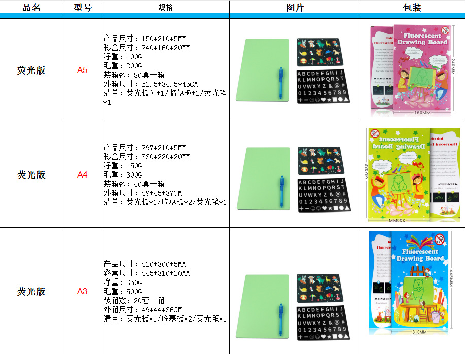 *厂家直销A3A4儿童益智led荧光写字涂鸦板PVC魔术夜光绘画板玩具