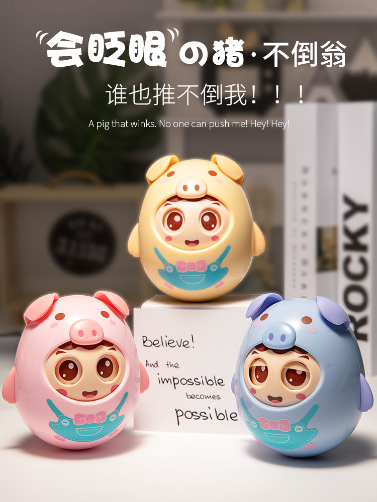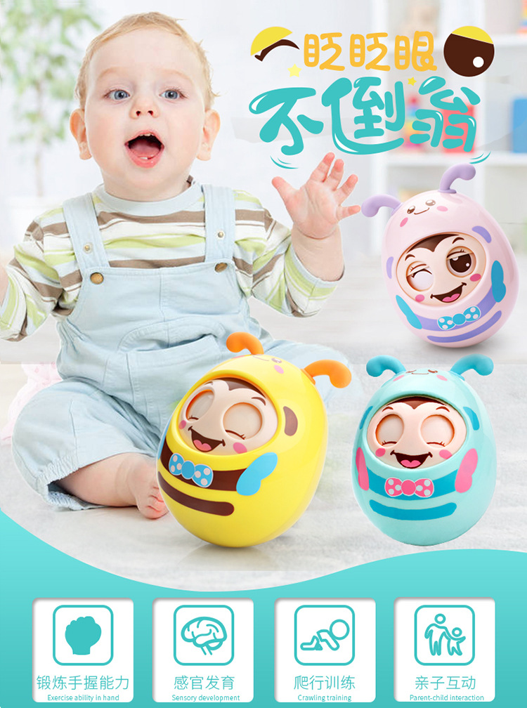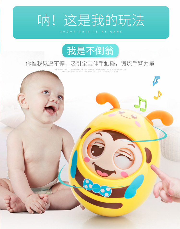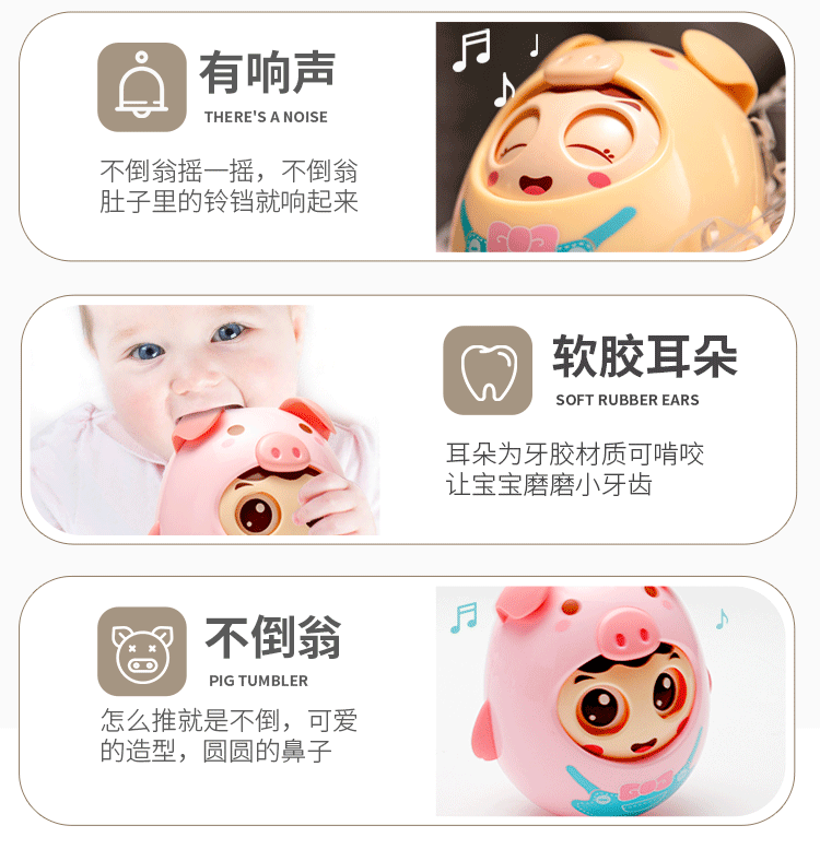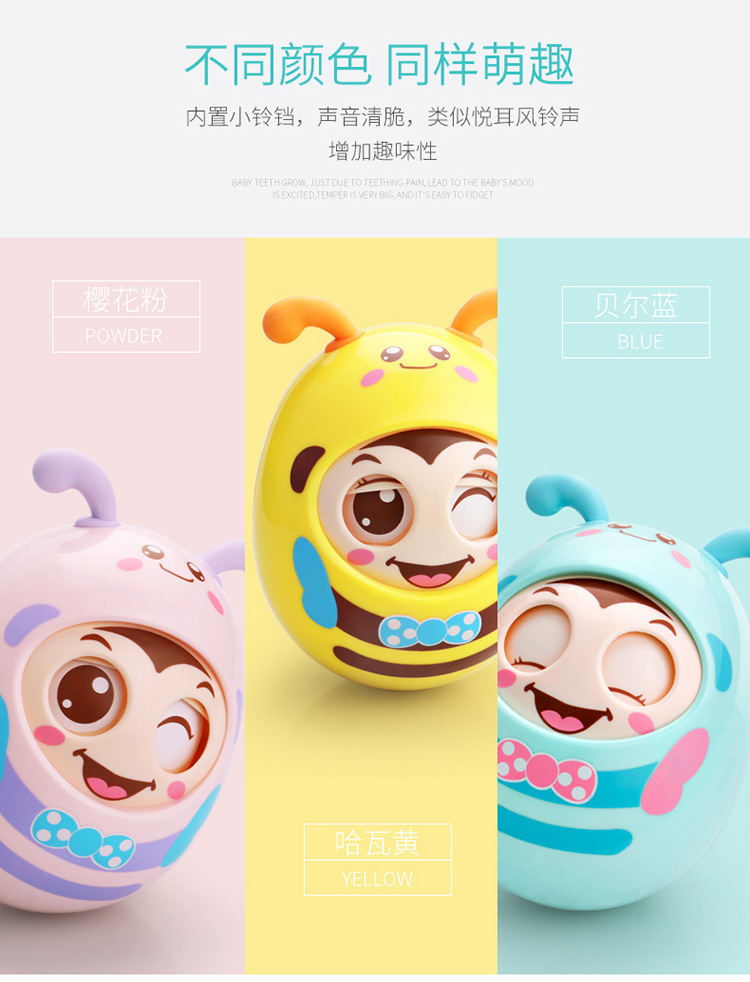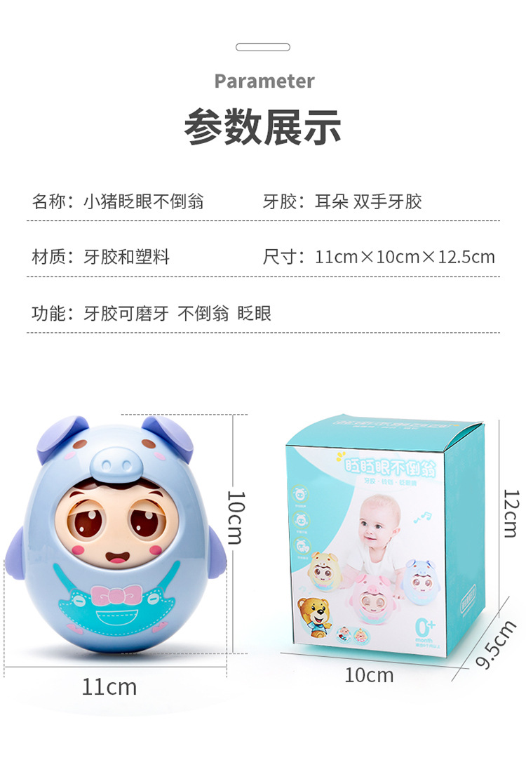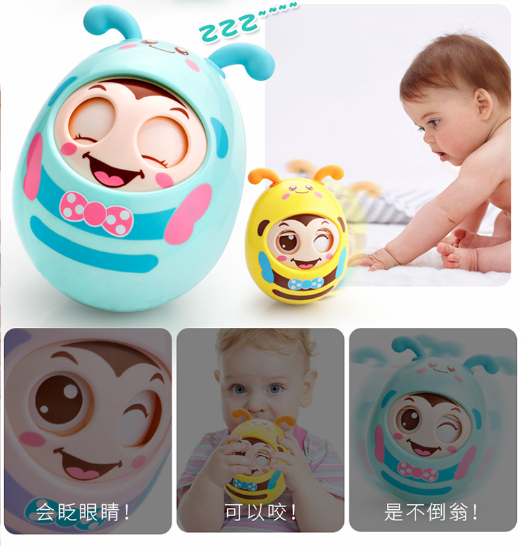 *婴儿手抓玩具可咬牙胶6-12个月益智新生儿摇铃女孩卡通不倒翁男h