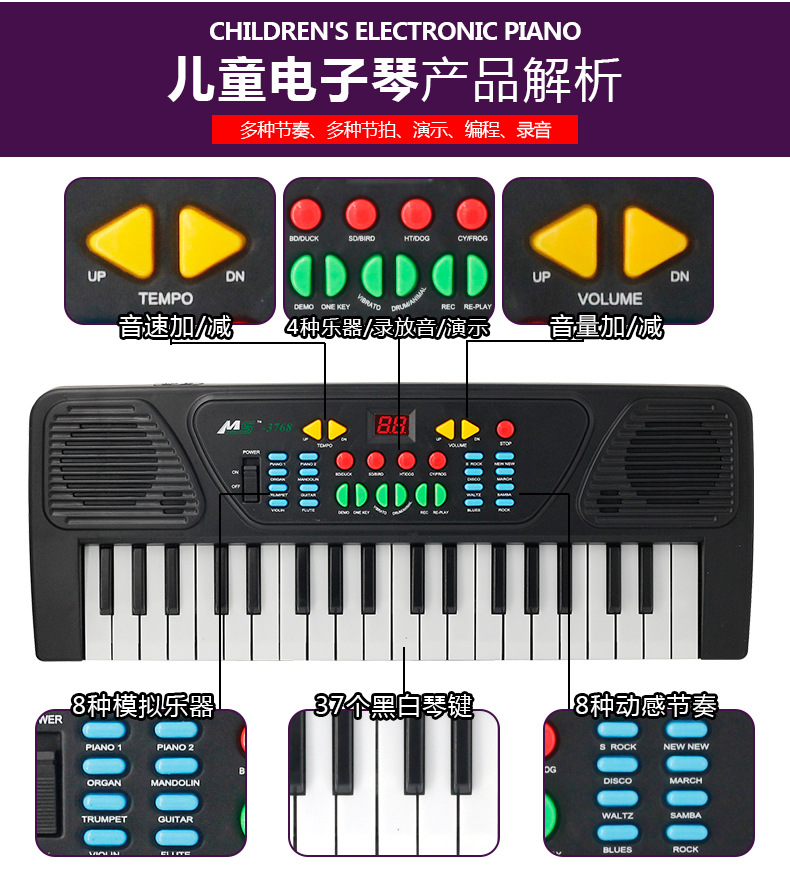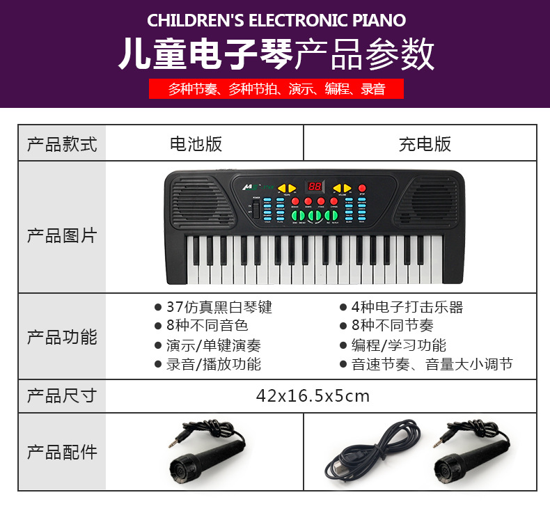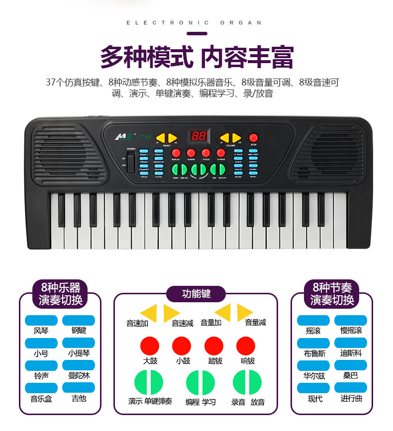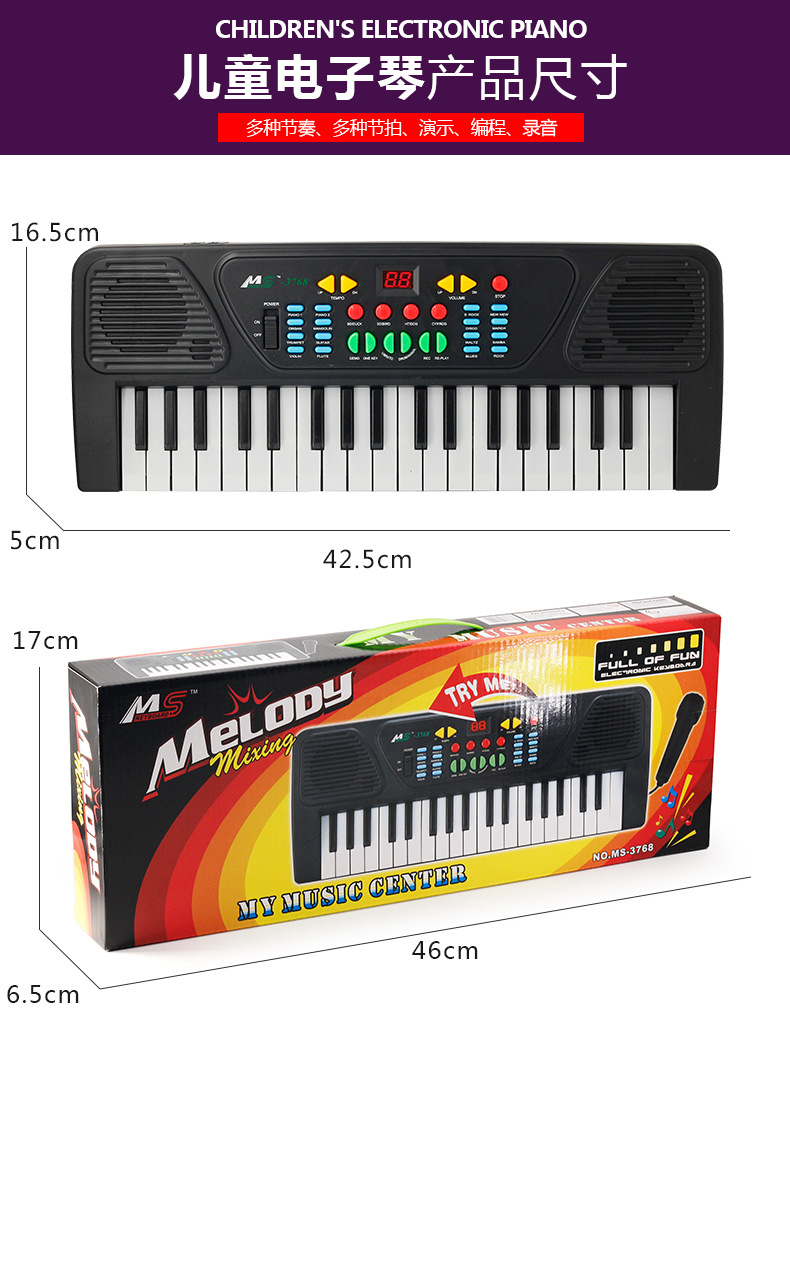 | 37 key electronic keyboard rechargeable version(37键电子琴充电版) | USD $5.62 | 92442 box available |