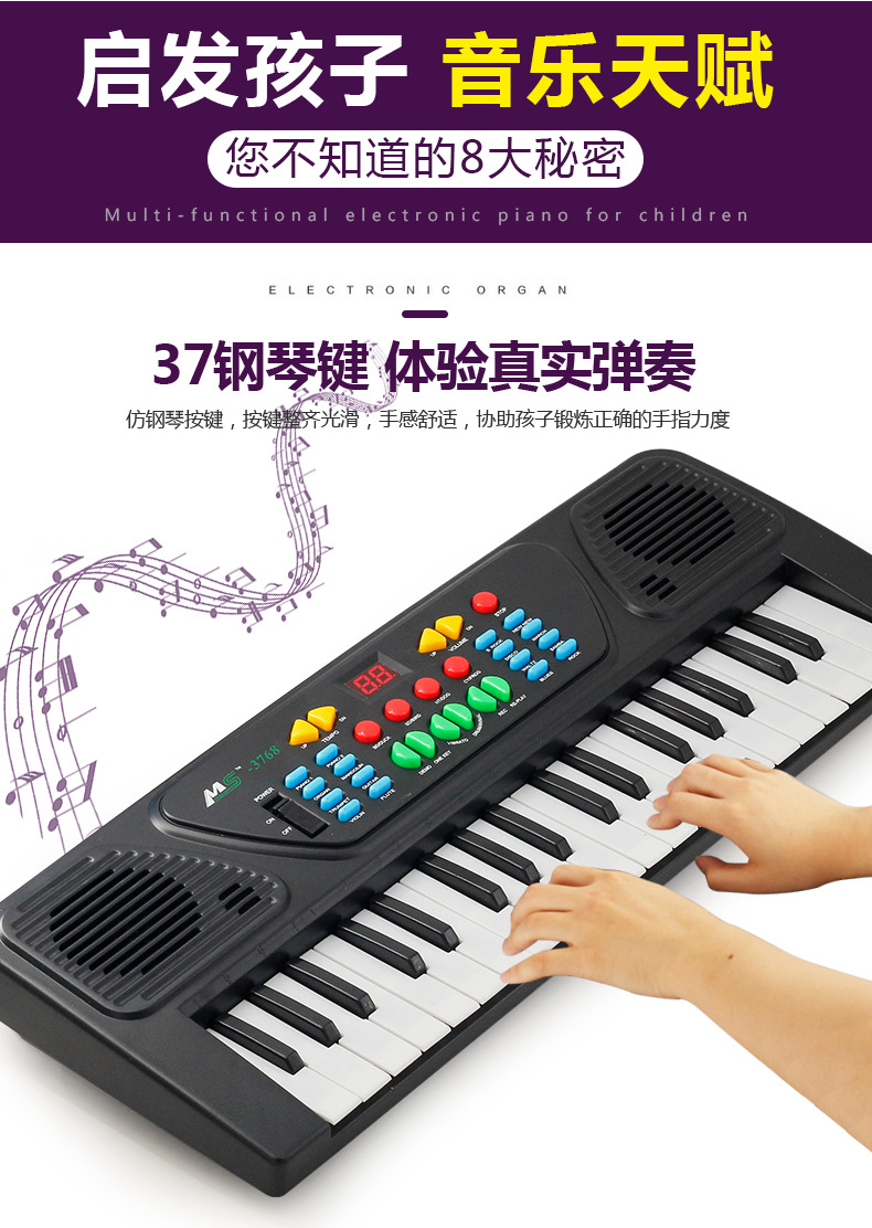 *儿童益智早教37键电子琴 带麦克风女孩音乐教学钢琴 淘宝热卖玩j