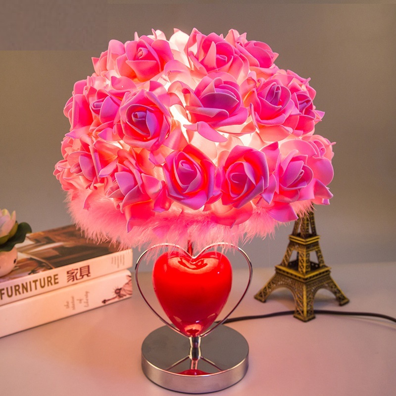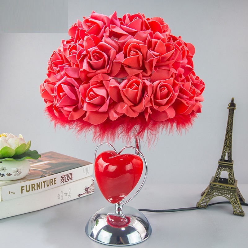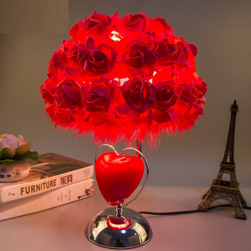 外贸专供新款爱心玫瑰花婚庆台灯带香薰功能结婚礼物