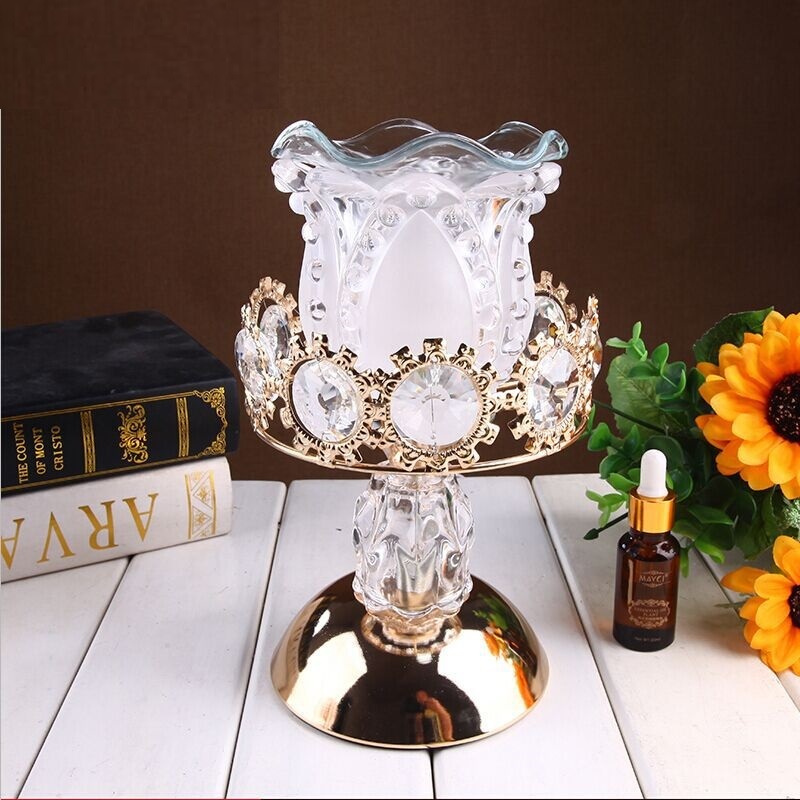 外贸专供高档镀金磨砂珍珠花瓣盛典欧洲水晶台灯热销香薰灯B4285