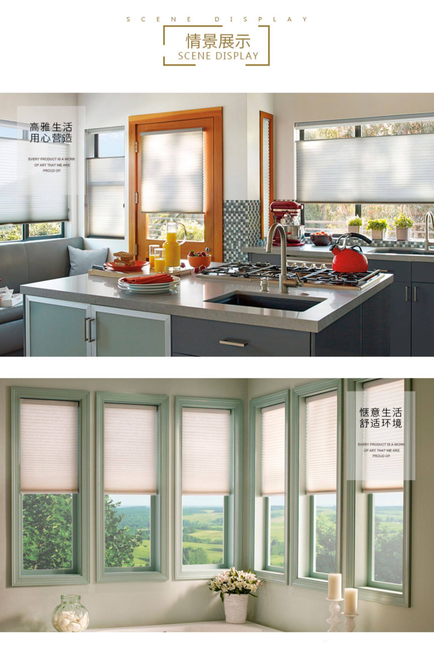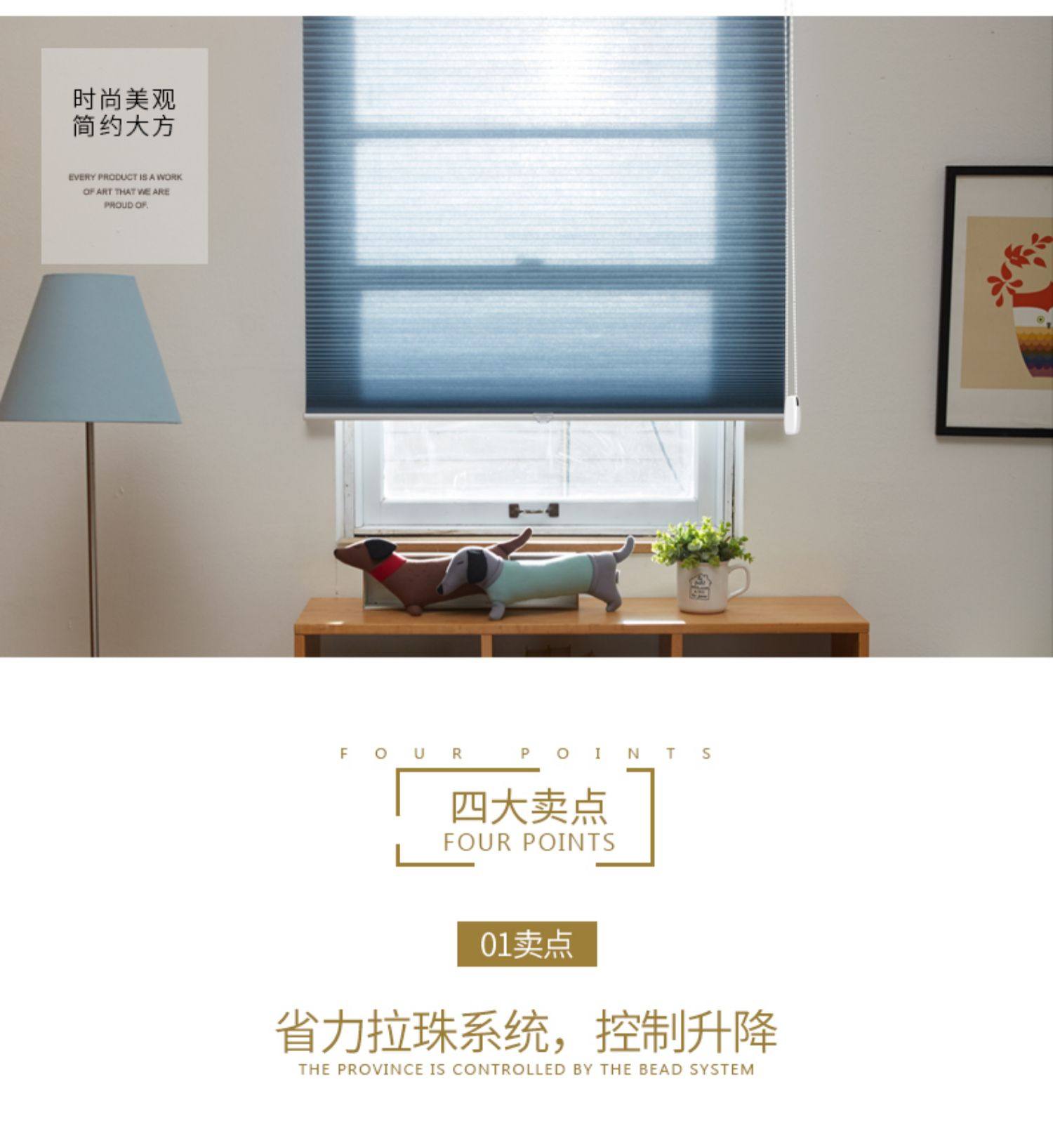 窗帘拉珠款遮阳蜂巢帘风琴帘蜂窝帘百叶窗帘遮光升降
