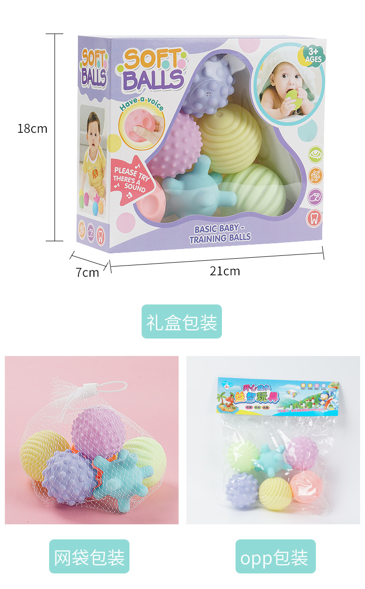 软胶多纹理手抓球 多功能感知婴儿触感球宝宝学爬益智按摩玩具