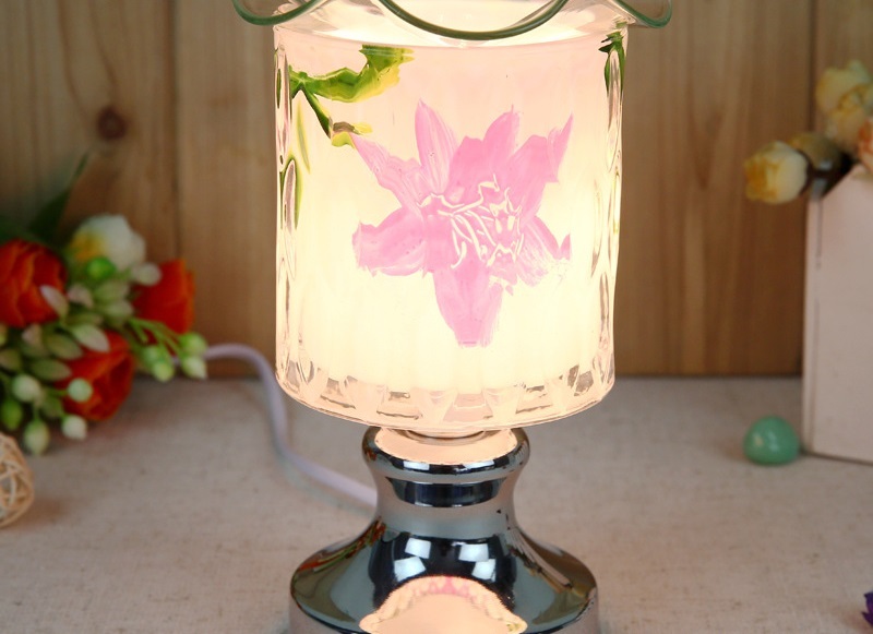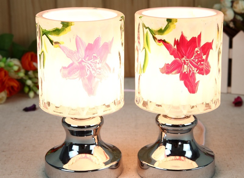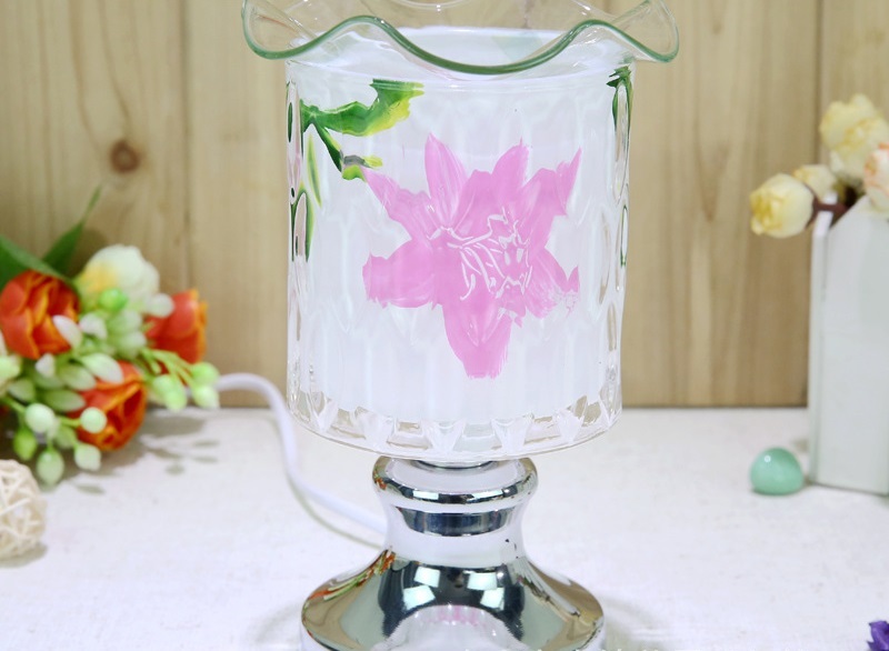 外贸专供精品店礼品货源玻璃绘彩百合花香薰灯插电触摸感应小夜灯