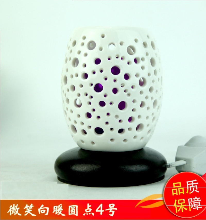 外贸专供微笑向暖圆点4号香薰灯陶瓷香薰灯实木底座香薰灯T0436