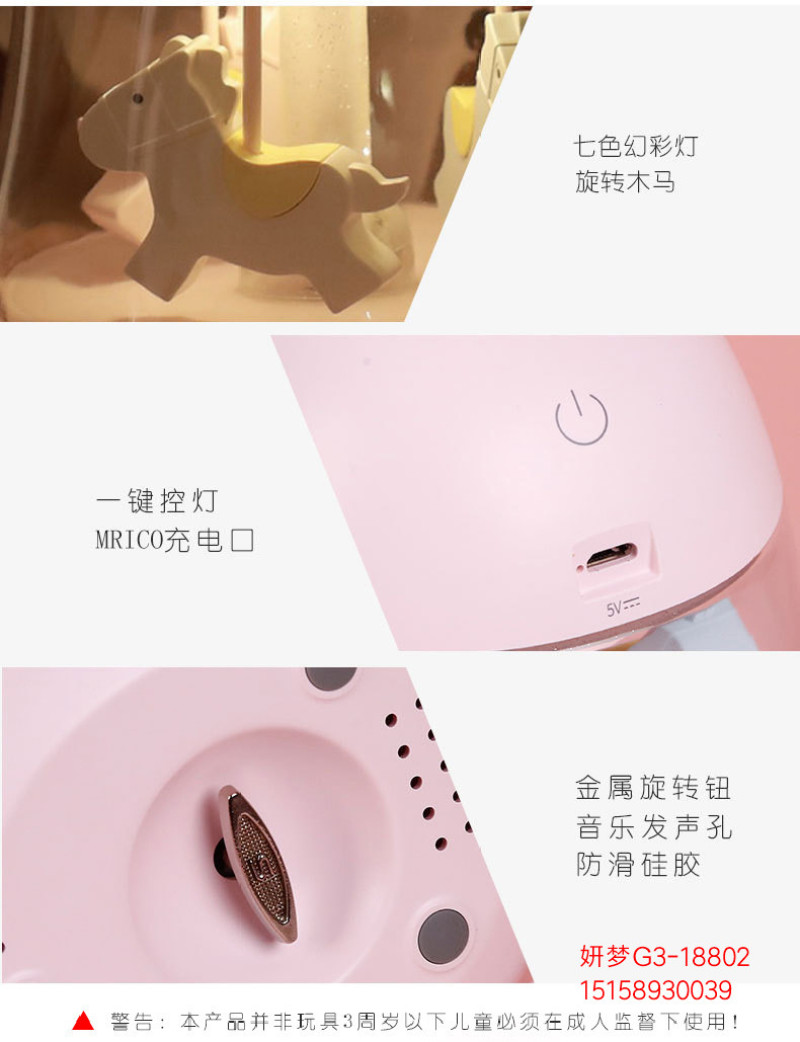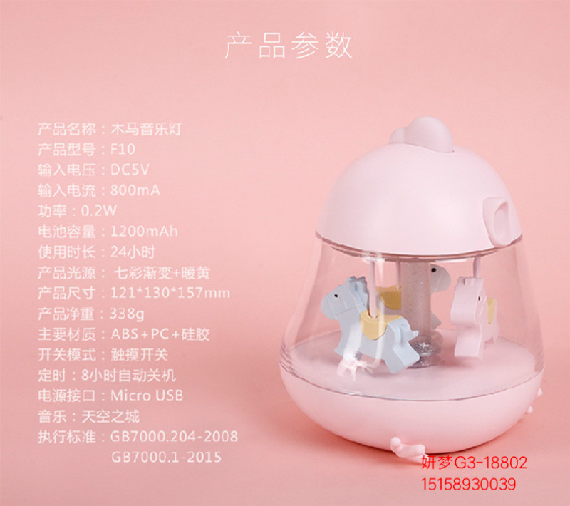 旋转木马音乐小夜灯睡眠台灯创意浪漫女生宿舍少女心充电式床头灯