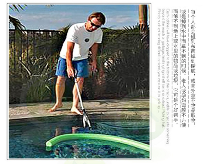 手柄有钢丝拉伸,质量保证,经久耐用。具有良好的外观质感,触感柔和有弹性,和接触物体有很好的吻合性,防止所夹把物体脱落,闭合后间隙可夹最大6cm的物体。