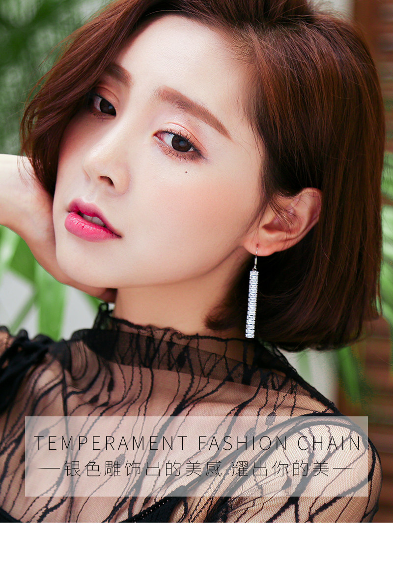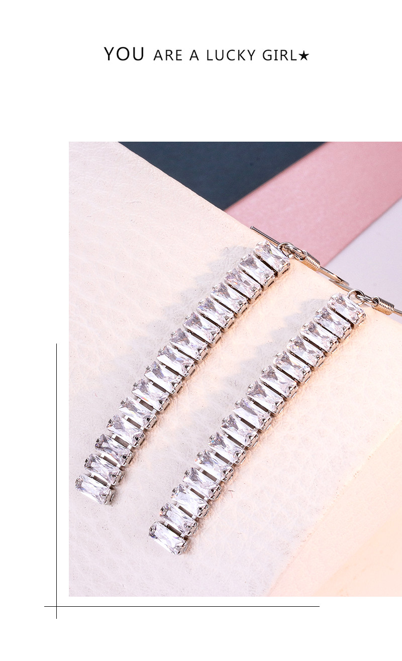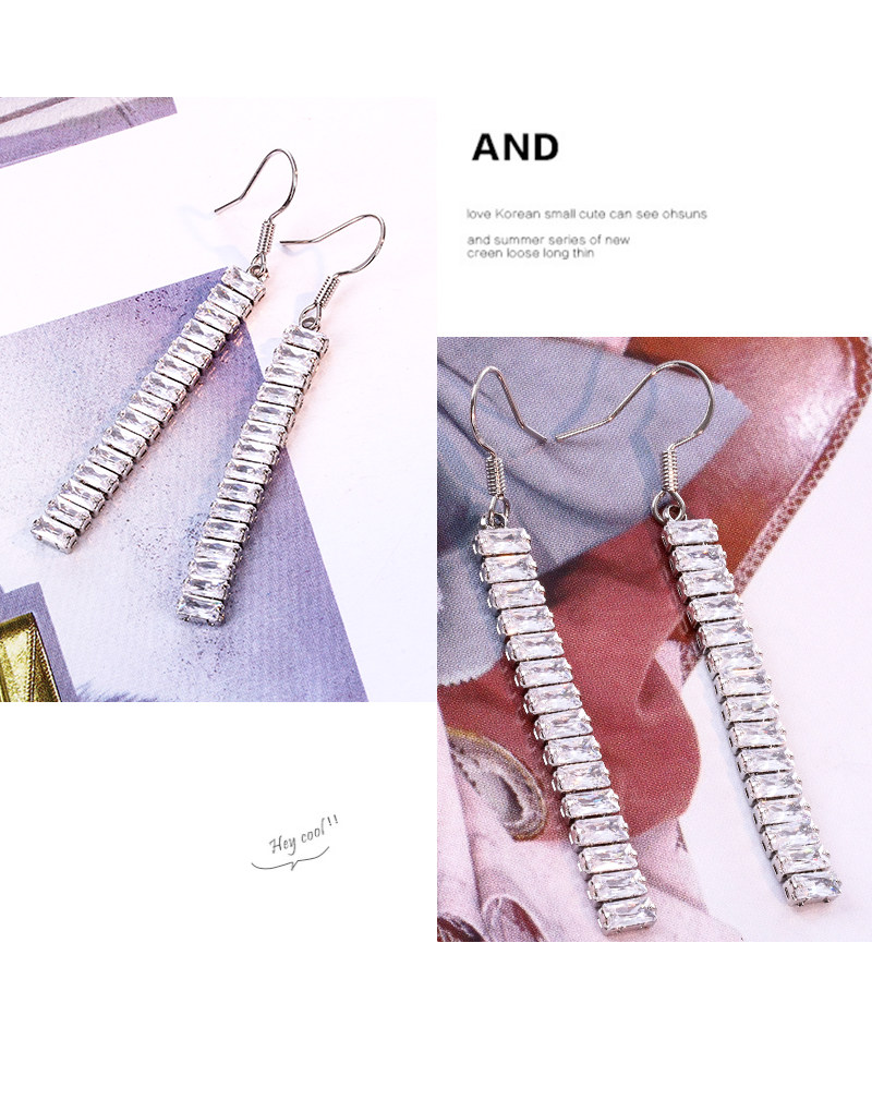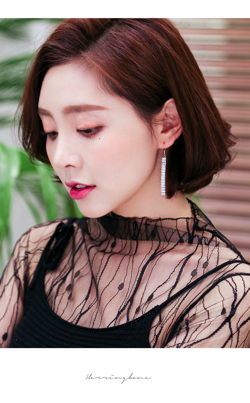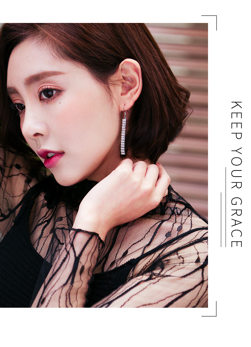 曼休妮S925银耳钩长款火车轨道拉风耳环韩版夸张耳坠闪亮瘦脸耳饰