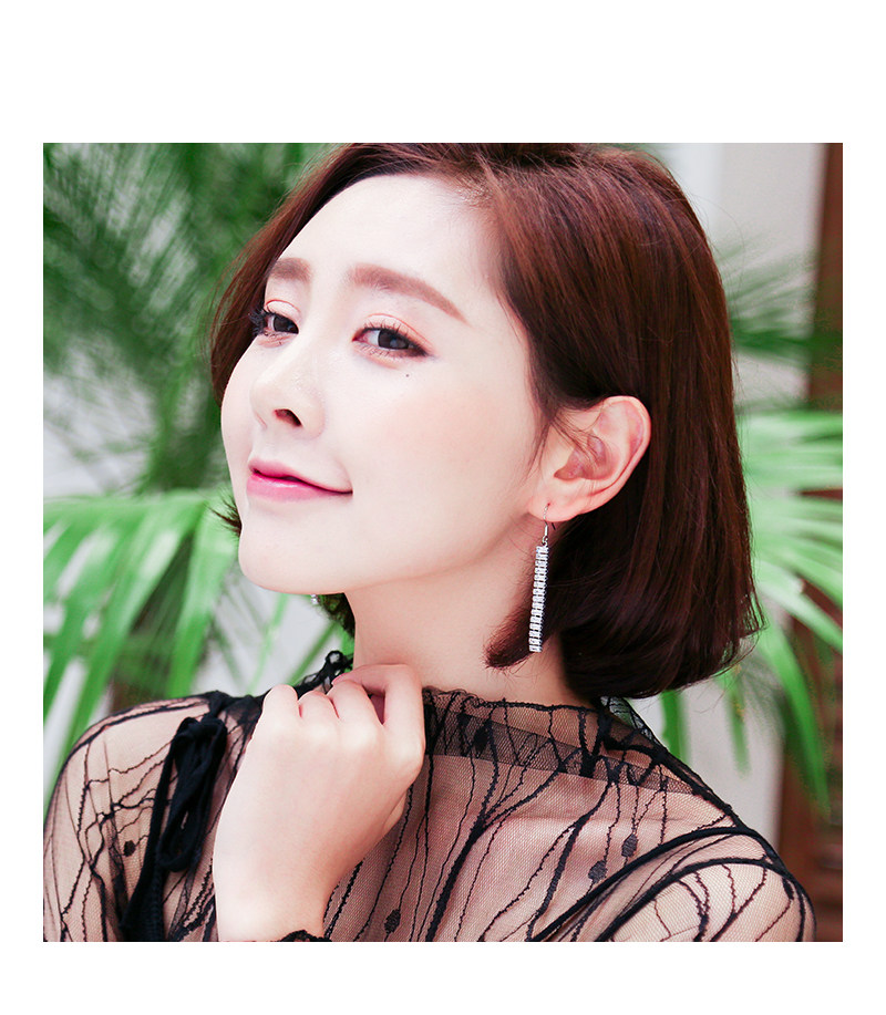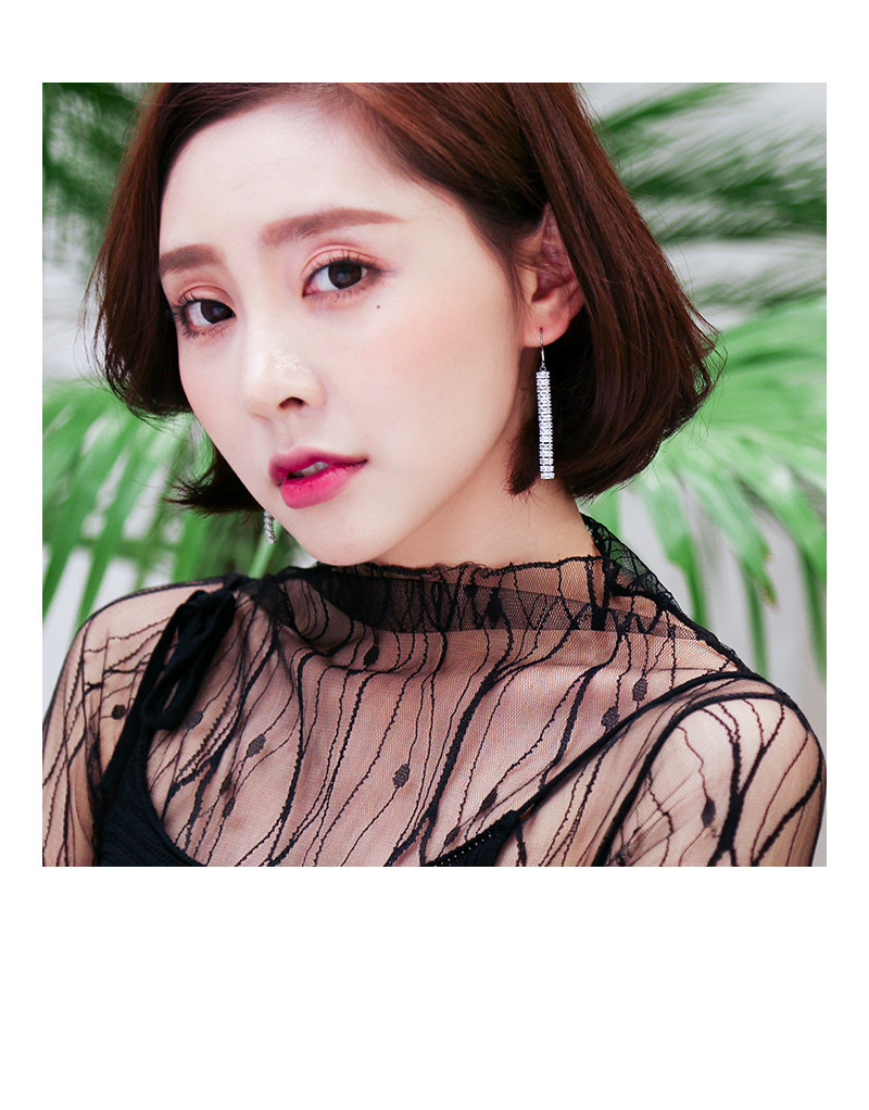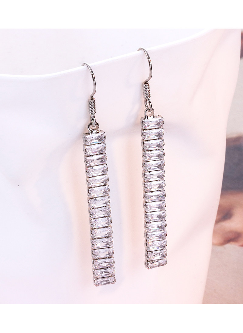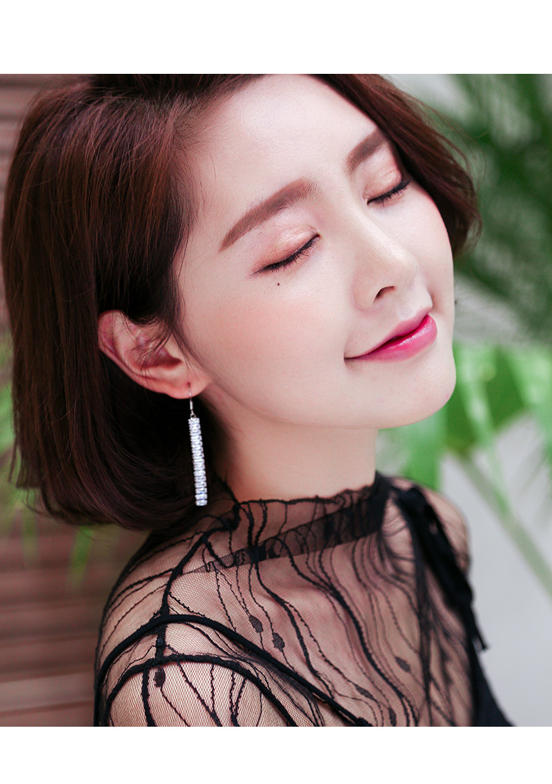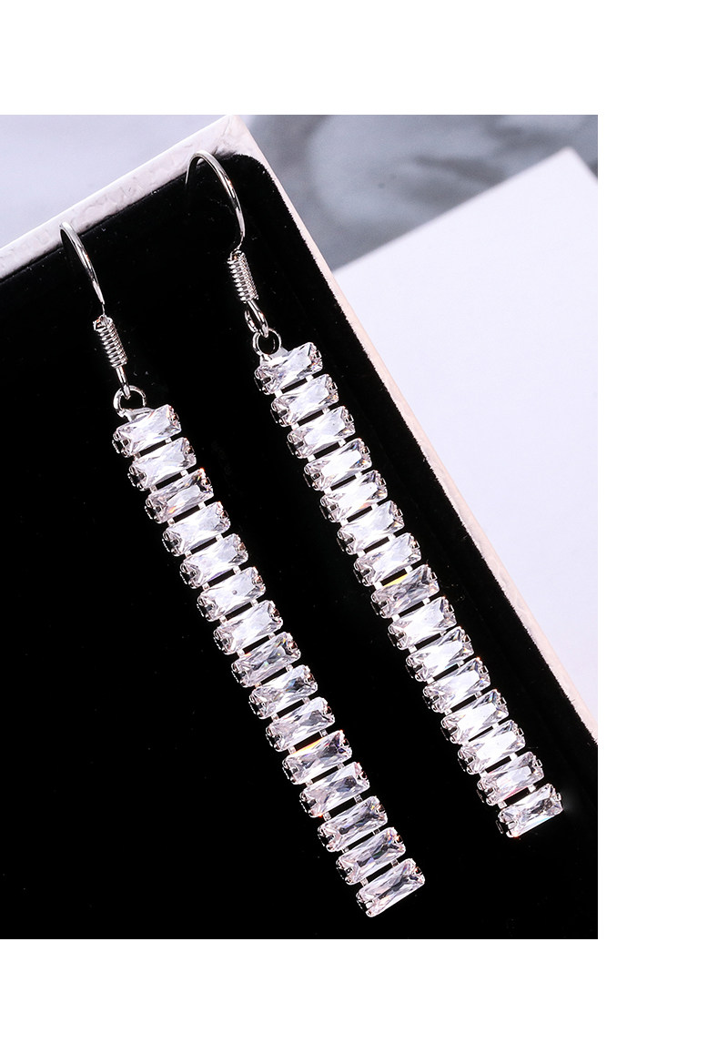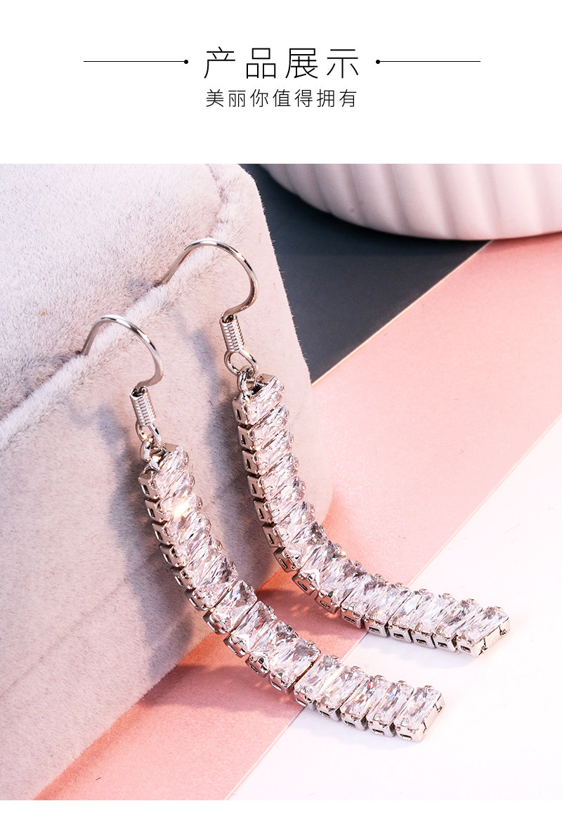 曼休妮S925银耳钩长款火车轨道拉风耳环韩版夸张耳坠闪亮瘦脸耳饰