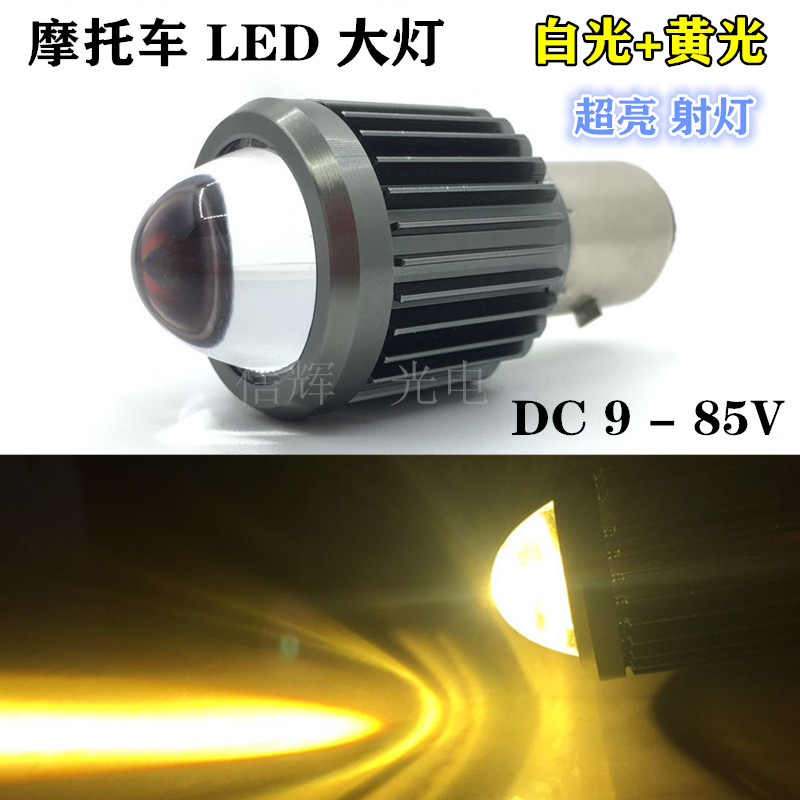 摩托车LED灯,超亮10W射灯 白光+黄光,透镜聚光灯。宽压9-85V超亮前大灯。