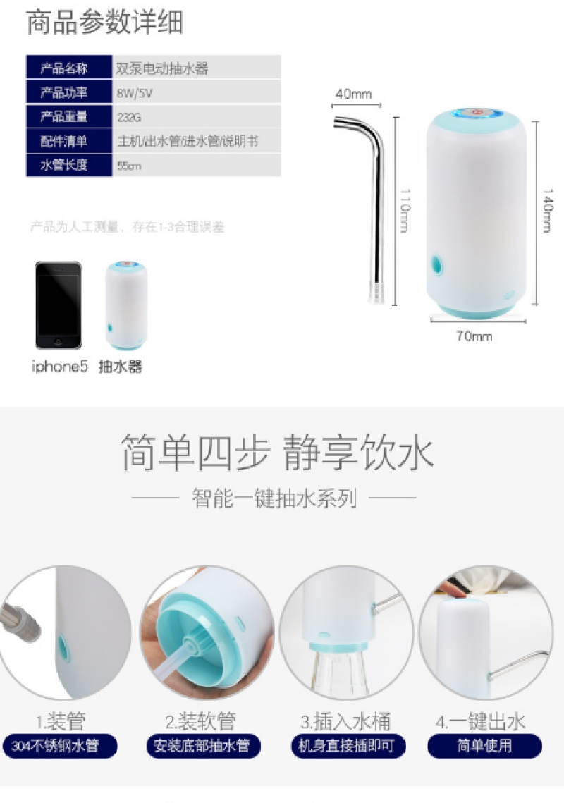 厂家直销电动抽水器家用户外便携式抽水器双泵款桶装水抽水器