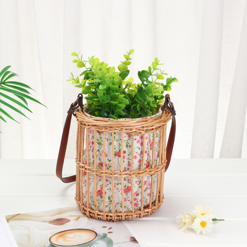 花篮装饰藤编手提干花鲜花插花篮子玫瑰假花圆形公主花篮花盆