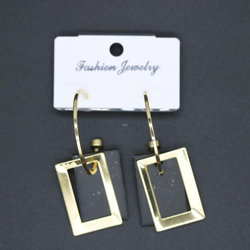 韩国东大门时尚百搭个性冷淡风S925银针显脸瘦耳坠金属耳环耳饰女