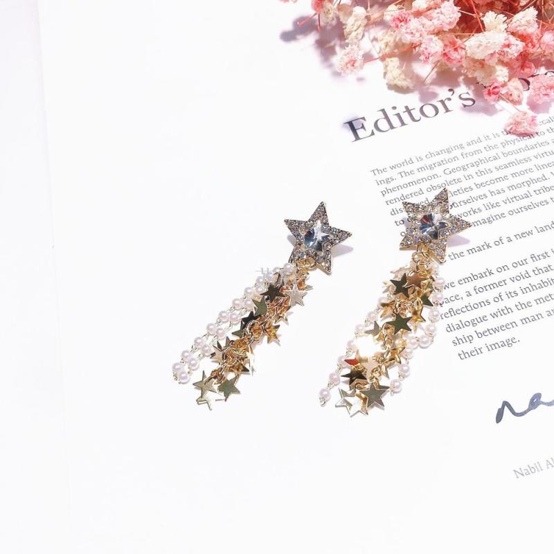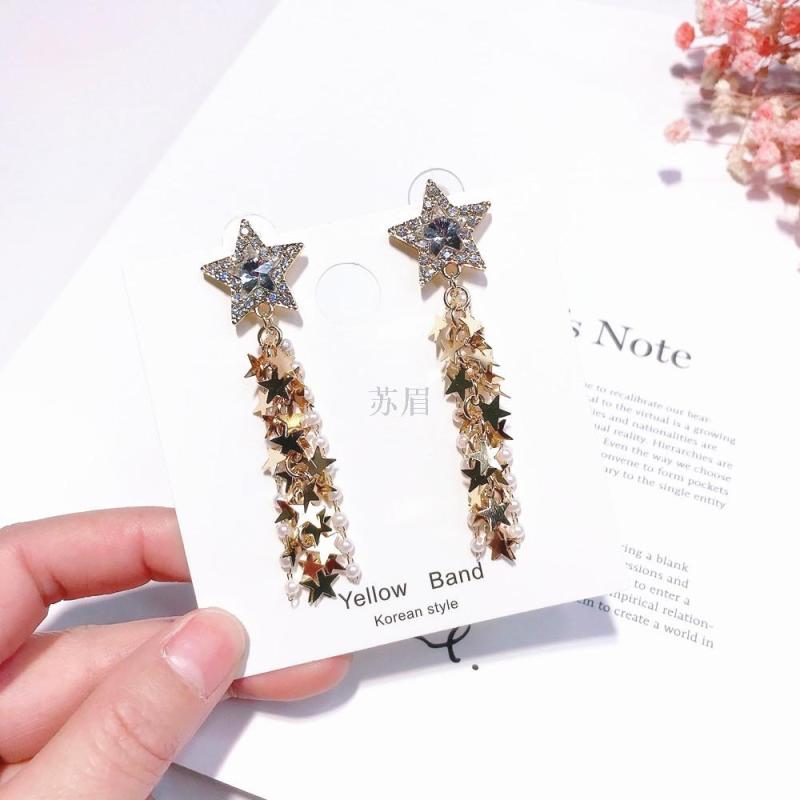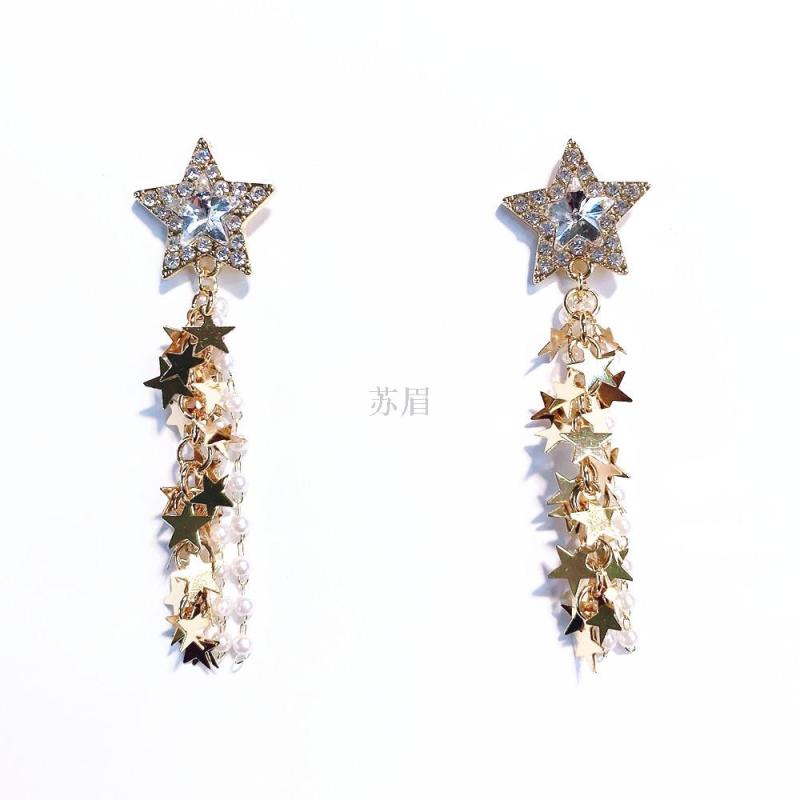 韩国东大门时尚潮流耳饰品长款网红流苏耳钉S925银针水晶复古耳环