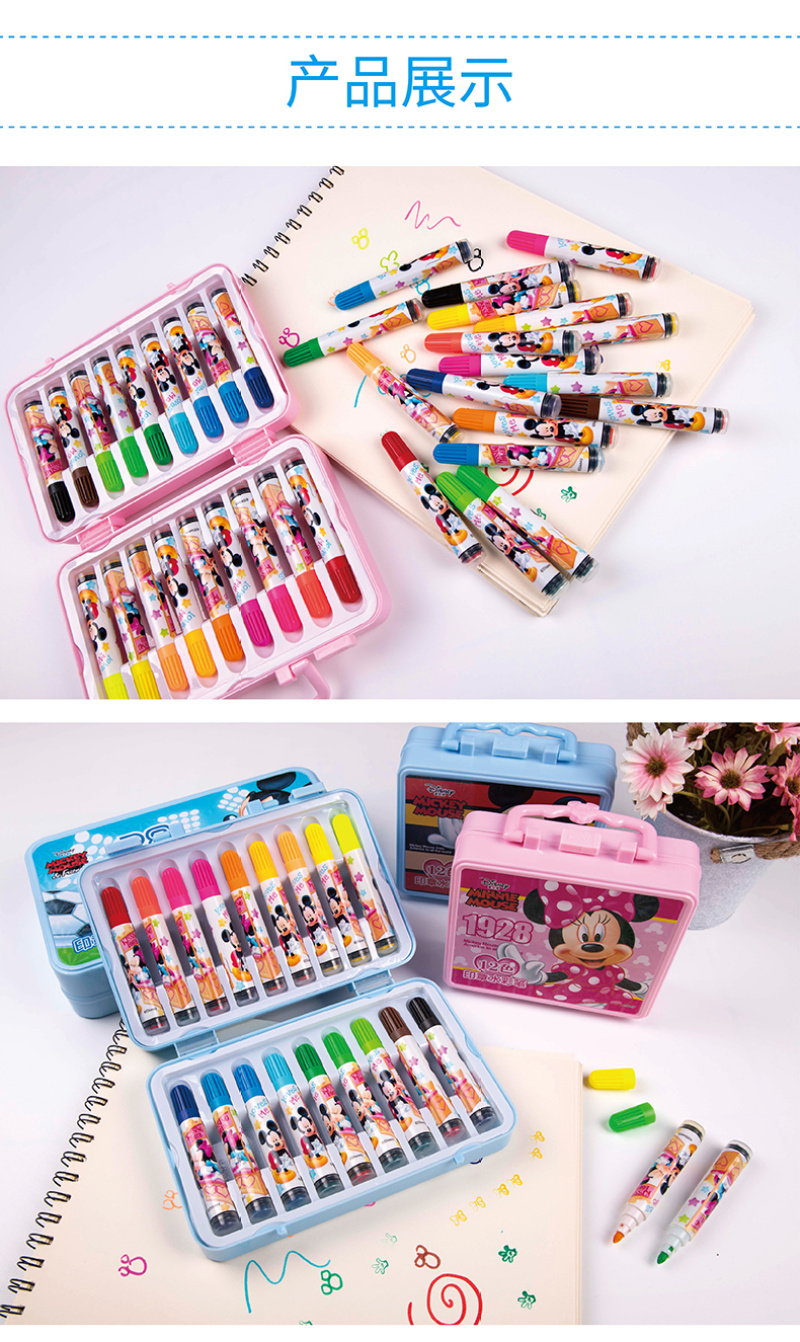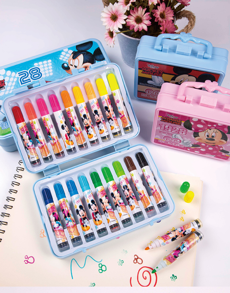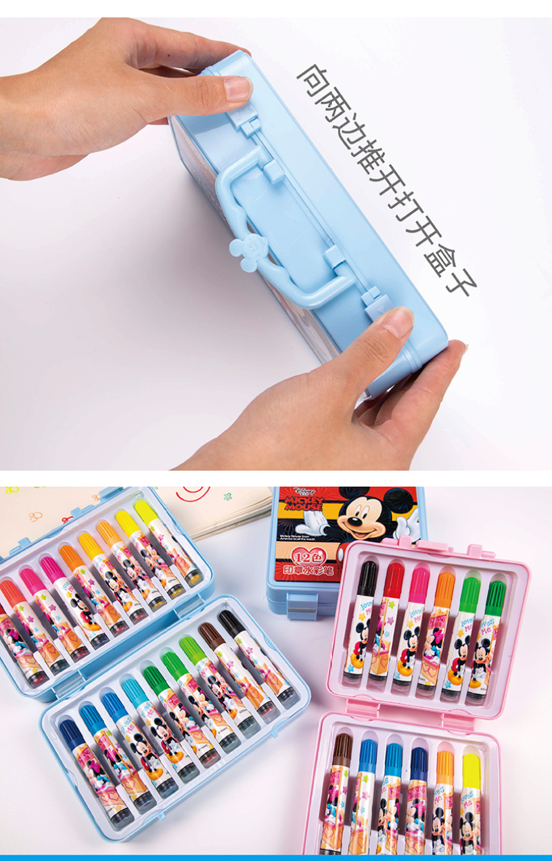 儿童正品水彩笔批发盒装36色小学生手提印章水彩笔