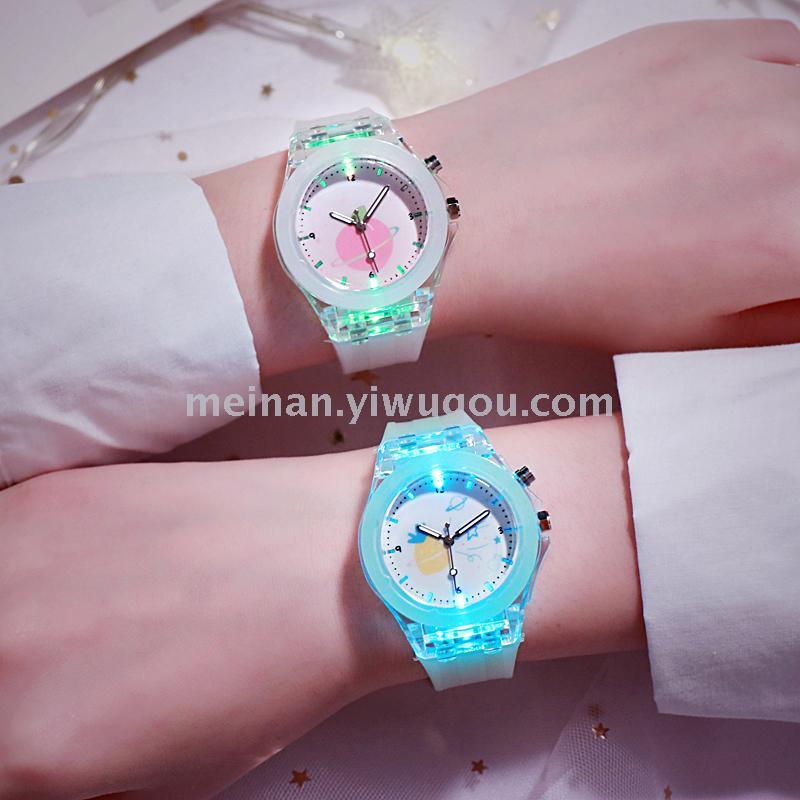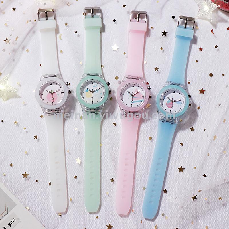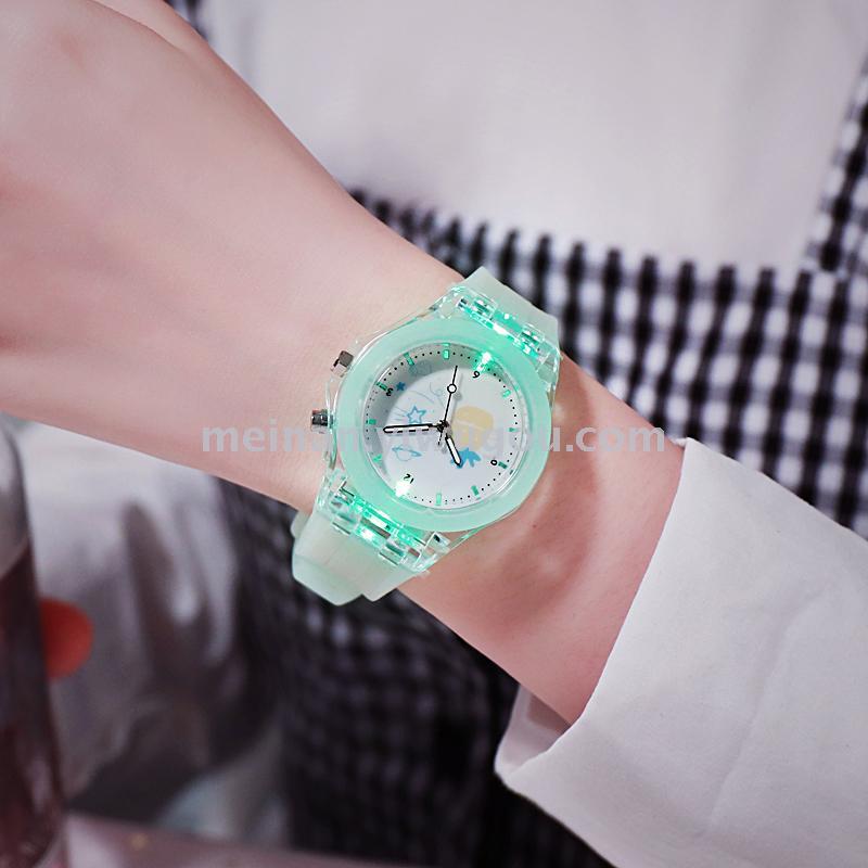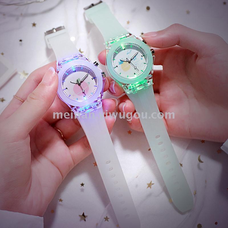 新款创意学生夜光表时尚儿童糖果色石英表水果电子硅胶表