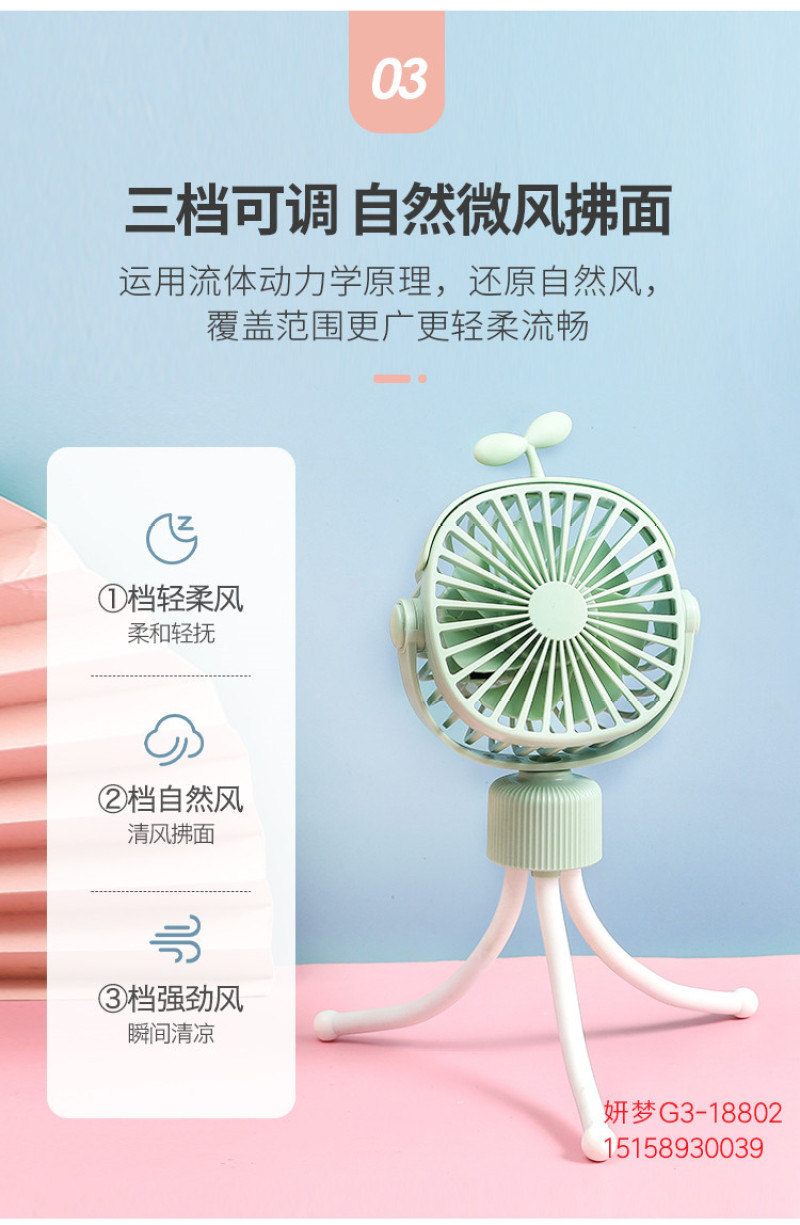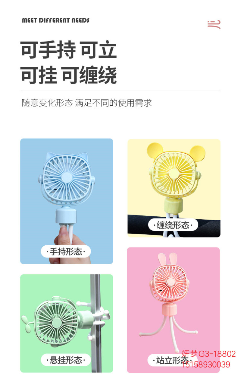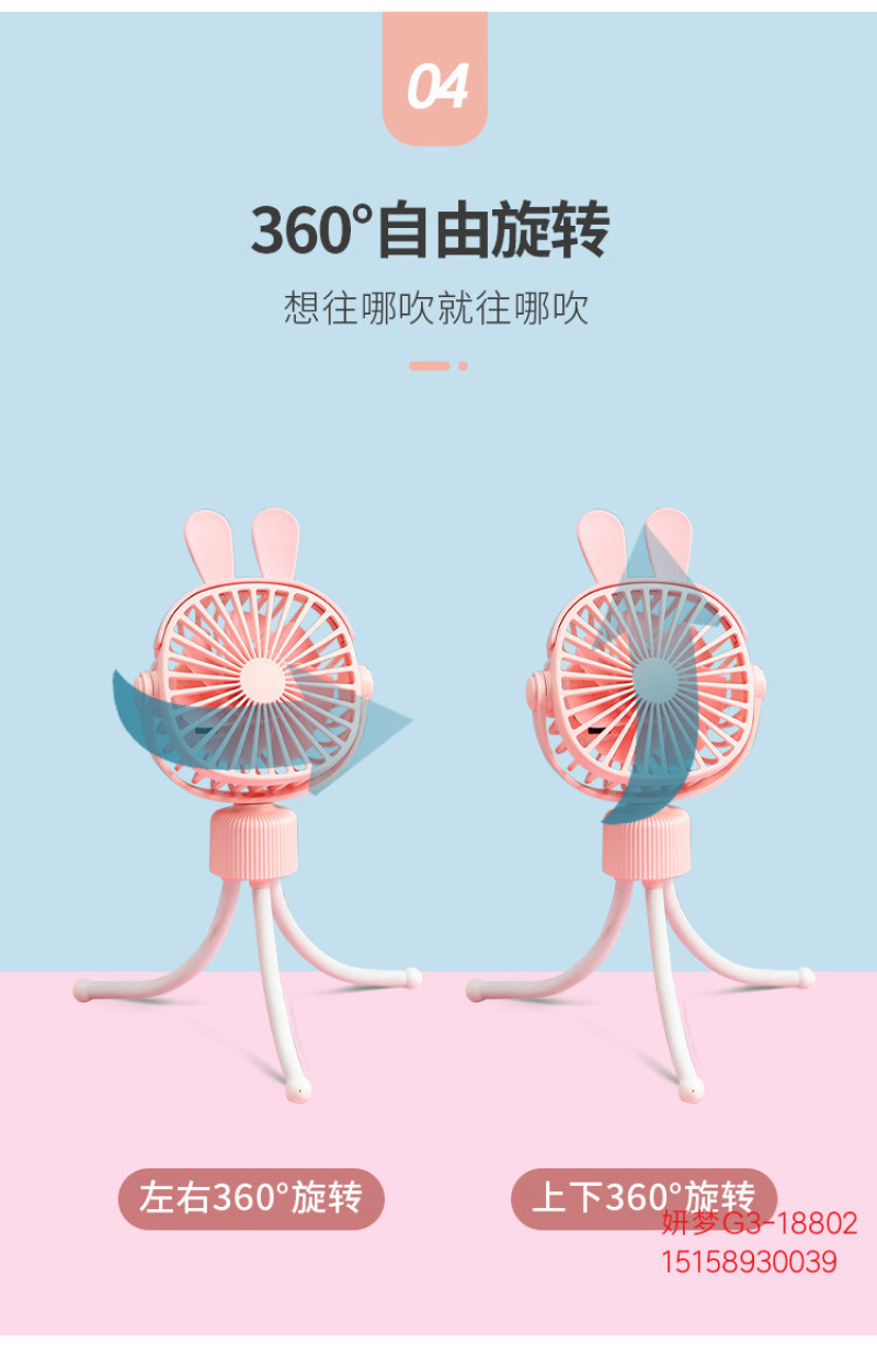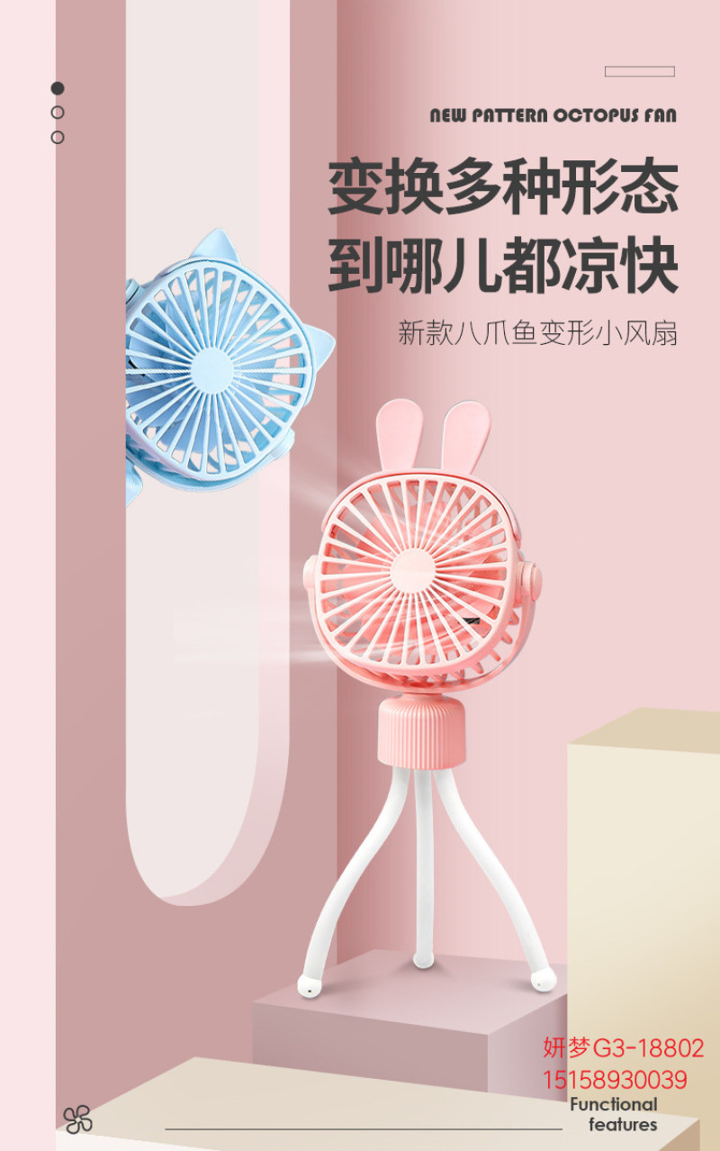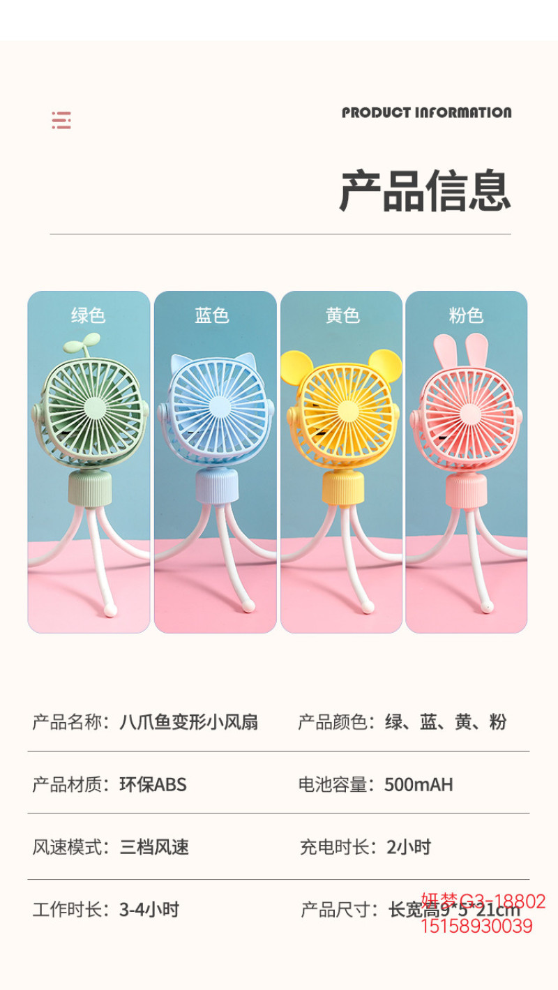 可爱八爪鱼usb小风扇婴儿车风扇宝宝专用静音可充电便携手持桌面